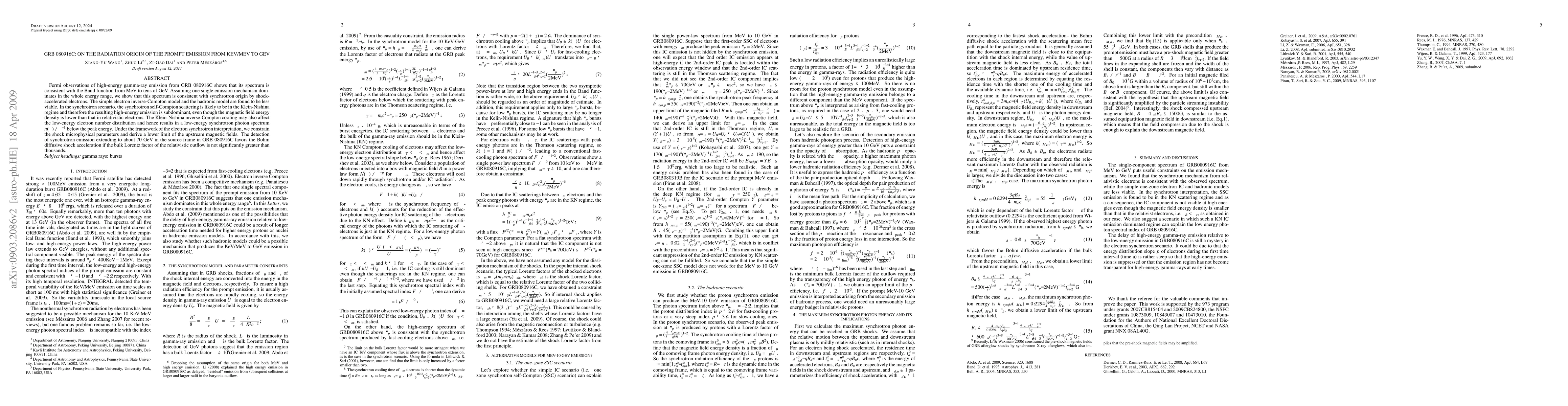 The Fermi telescope observed a high-energy gamma-ray emission from GRB 080916C, consistent with synchrotron origin from shock-accelerated electrons, rather than other models like inverse-Compton or hadronic processes.