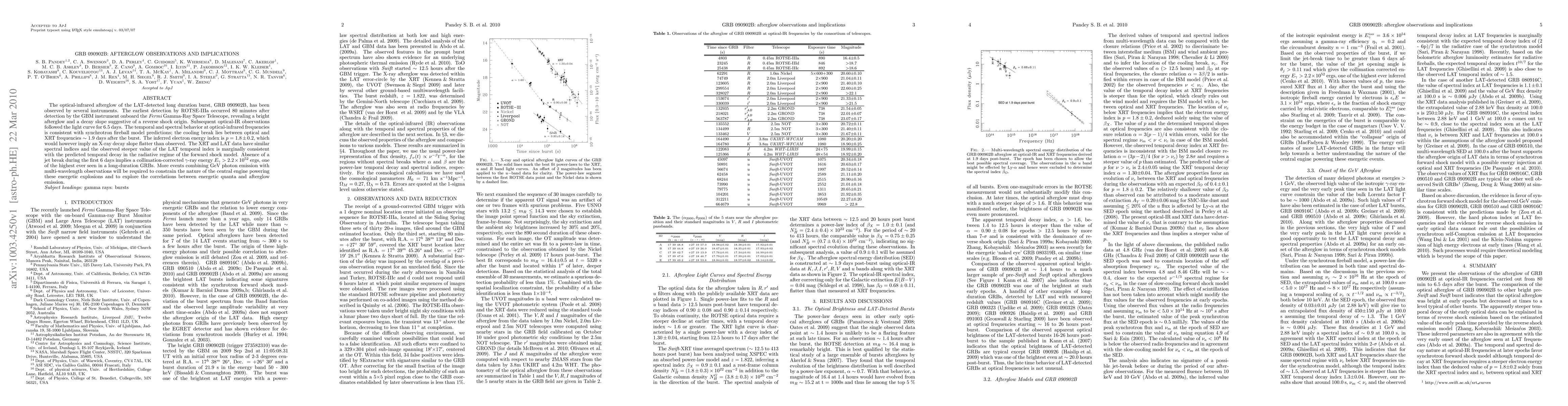 The optical-infrared afterglow of the LAT-detected long duration burst, GRB 090902B, has been observed by several instruments. The earliest detection by ROTSE-IIIa occurred 80 minutes after detection by the GBM instrument onboard the Fermi Gamma-Ray Space Telescope, revealing a bright afterglow and a decay slope suggestive of a reverse shock origin. Subsequent optical-IR observations followed the light curve for 6.5 days. The temporal and spectral behavior at optical-infrared frequencies is consistent with synchrotron fireball model predictions; the cooling break lies between optical and XRT frequencies ~ 1.9 days after the burst. The inferred electron energy index is $p = 1.8 \pm 0.2$, which would however imply an X-ray decay slope flatter than observed. The XRT and LAT data have similar spectral indices and the observed steeper value of the LAT temporal index is marginally consistent with the predicted temporal decay in the radiative regime of the forward shock model. Absence of a jet break during the first 6 days implies a collimation-corrected $\gamma$-ray energy $E_{\gamma} > 2.2\times10^{52}\rm$ ergs, one of the highest ever seen in a long-duration GRBs. More events combining GeV photon emission with multi-wavelength observations will be required to constrain the nature of the central engine powering these energetic explosions and to explore the correlations between energetic quanta and afterglow emission.