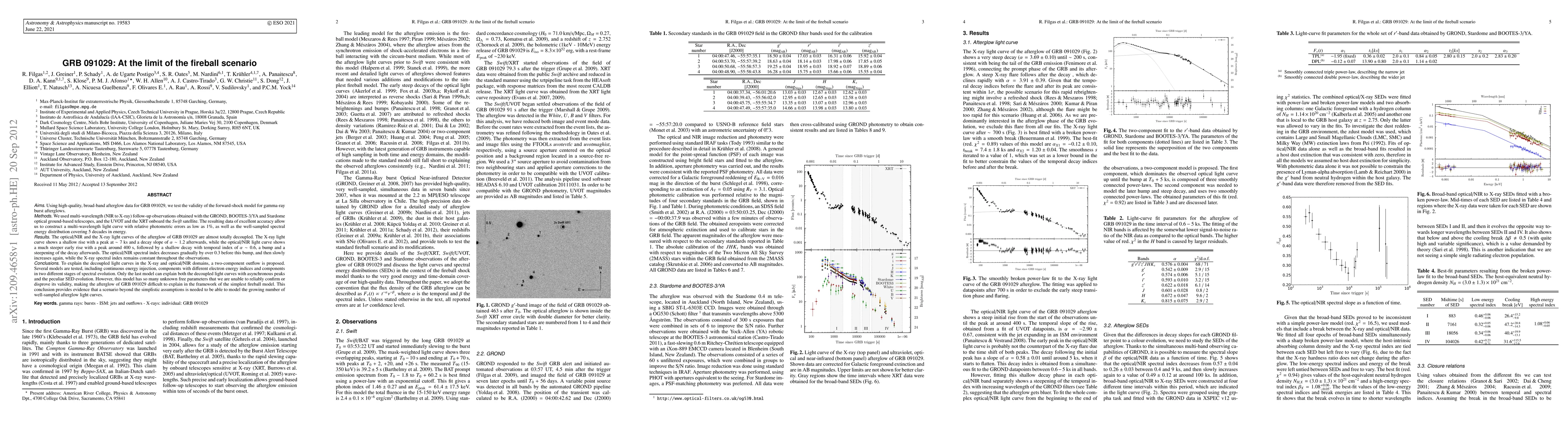 The paper examines GRB 091029's afterglow data using multi-wavelength observations, proposing a two-component outflow model to explain decoupled X-ray and optical/NIR light curves. Despite a model matching the data, many free parameters hinder validation, leaving GRB 091029's afterglow challenging to explain within the basic fireball model.