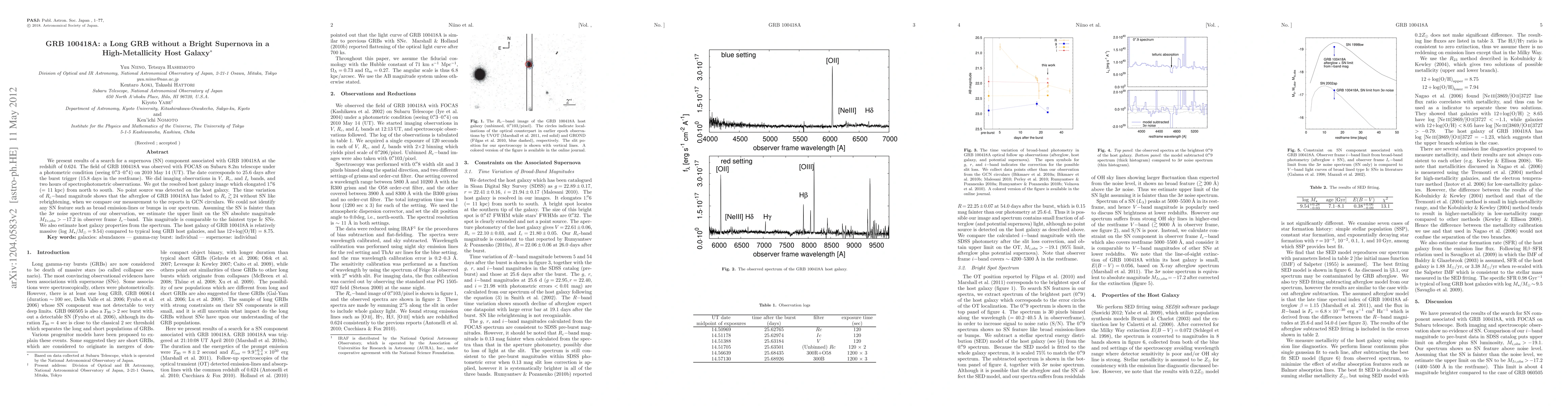 A long gamma-ray burst (GRB) was observed without a bright supernova in a high-metallicity host galaxy, with the afterglow fading to a magnitude comparable to faintest type Ic SNe.