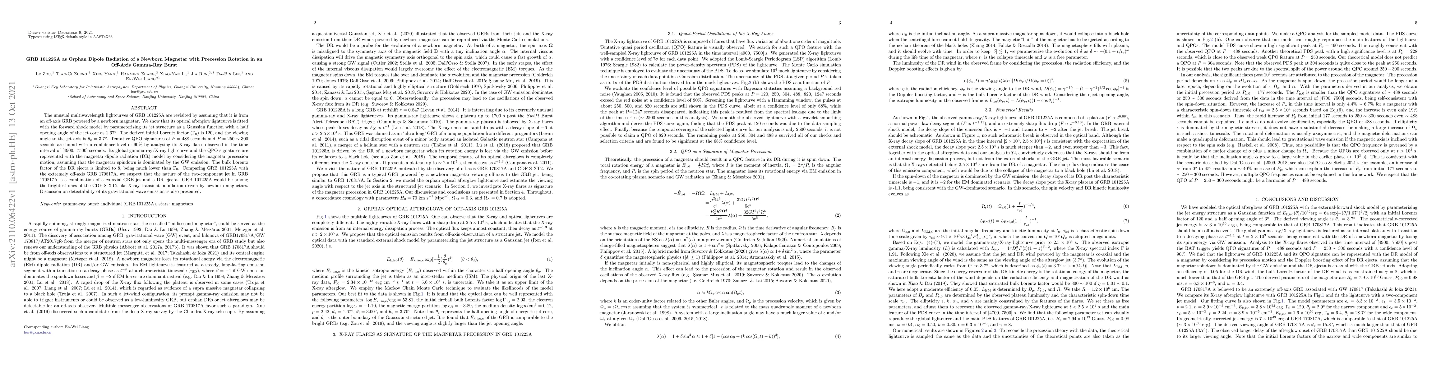 This paper revisits the unusual lightcurves of GRB 101225A, proposing it as an off-axis gamma-ray burst from a newborn magnetar with precession rotation. The optical afterglow is modeled using a forward shock with a Gaussian jet structure, and X-ray flares exhibit quasi-periodic oscillations (QPO) indicative of magnetar dipole radiation.