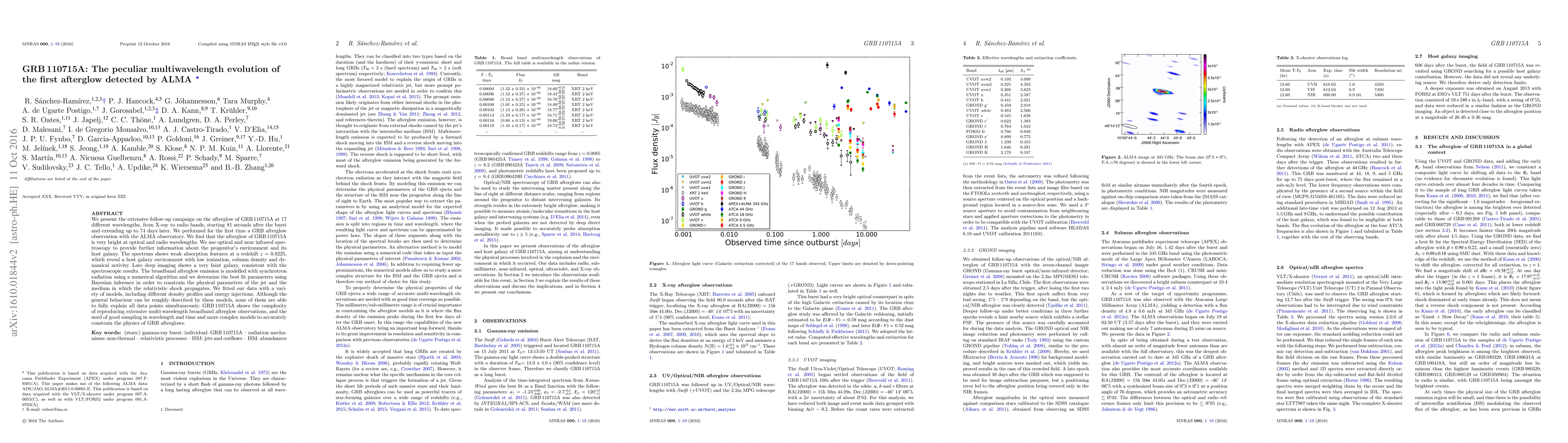We present the extensive follow-up campaign on the afterglow of GRB 110715A at 17 different wavelengths, from X-ray to radio bands, starting 81 seconds after the burst and extending up to 74 days later. We performed for the first time a GRB afterglow observation with the ALMA observatory. We find that the afterglow of GRB 110715A is very bright at optical and radio wavelengths. We use optical and near infrared spectroscopy to provide further information about the progenitor's environment and its host galaxy. The spectrum shows weak absorption features at a redshift z = 0.8225, which reveal a host galaxy environment with low ionization, column density and dynamical activity. Late deep imaging shows a very faint galaxy, consistent with the spectroscopic results. The broadband afterglow emission is modelled with synchrotron radiation using a numerical algorithm and we determine the best fit parameters using Bayesian inference in order to constrain the physical parameters of the jet and the medium in which the relativistic shock propagates. We fitted our data with a variety of models, including different density profiles and energy injections. Although the general behaviour can be roughly described by these models, none of them are able to fully explain all data points simultaneously. GRB 110715A shows the complexity of reproducing extensive multi-wavelength broadband afterglow observations, and the need of good sampling in wavelength and time and more complex models to accurately constrain the physics of GRB afterglows.