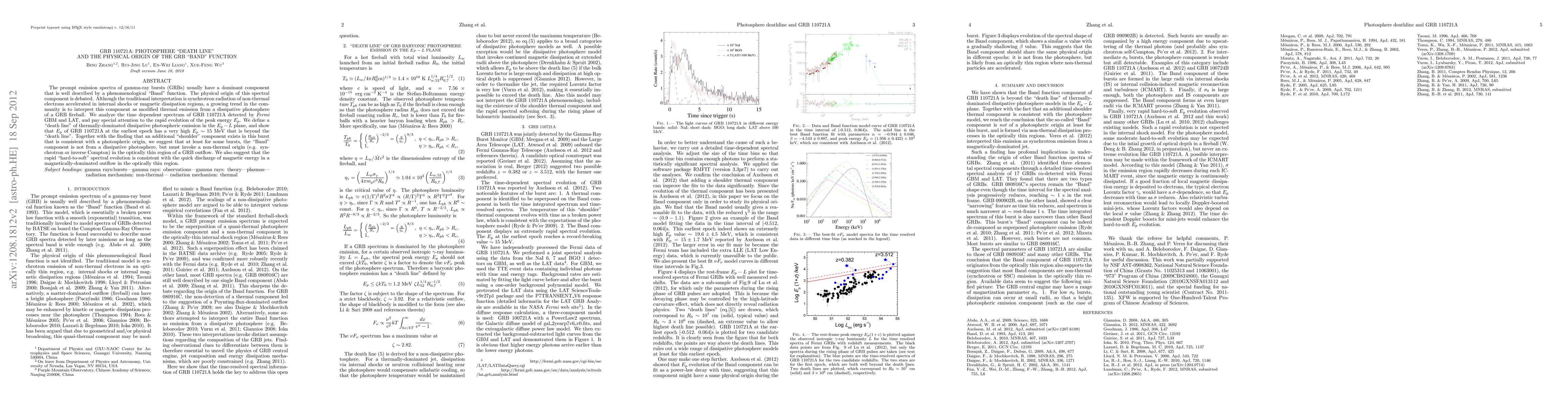 A study of GRB 110721A suggests that a high-energy peak energy beyond a certain threshold indicates a non-thermal origin for the burst's dominant spectral component, contradicting the traditional dissipative photosphere model.