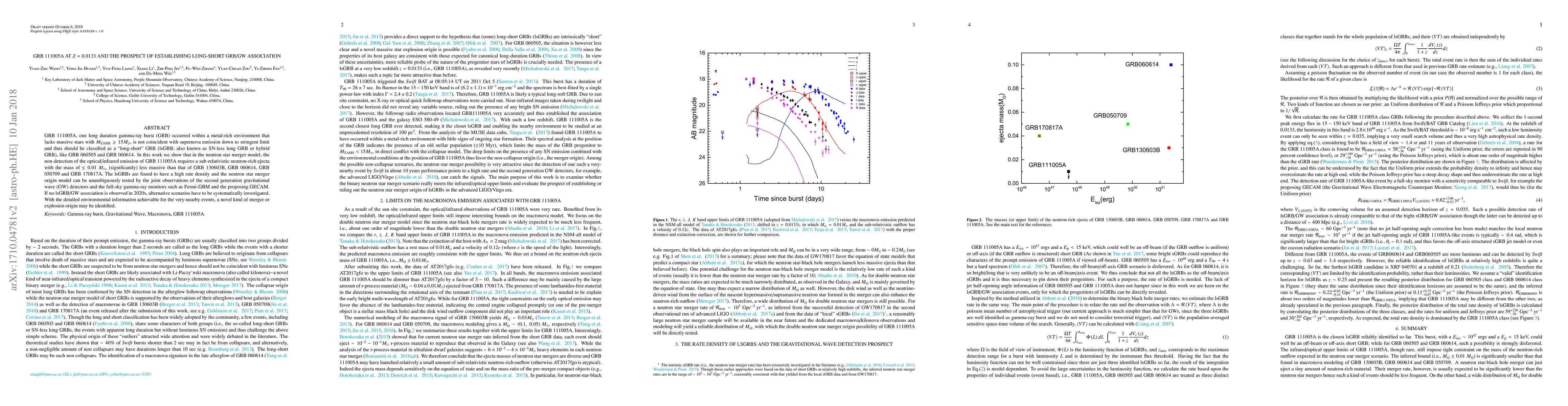 GRB 111005A, a long-duration gamma-ray burst occurring in a metal-rich environment without massive stars, lacks coincident supernova emission, classifying it as a "long-short" GRB. The neutron star merger model suggests its sub-relativistic ejecta is significantly less massive than other similar GRBs, indicating a high rate density for such events.