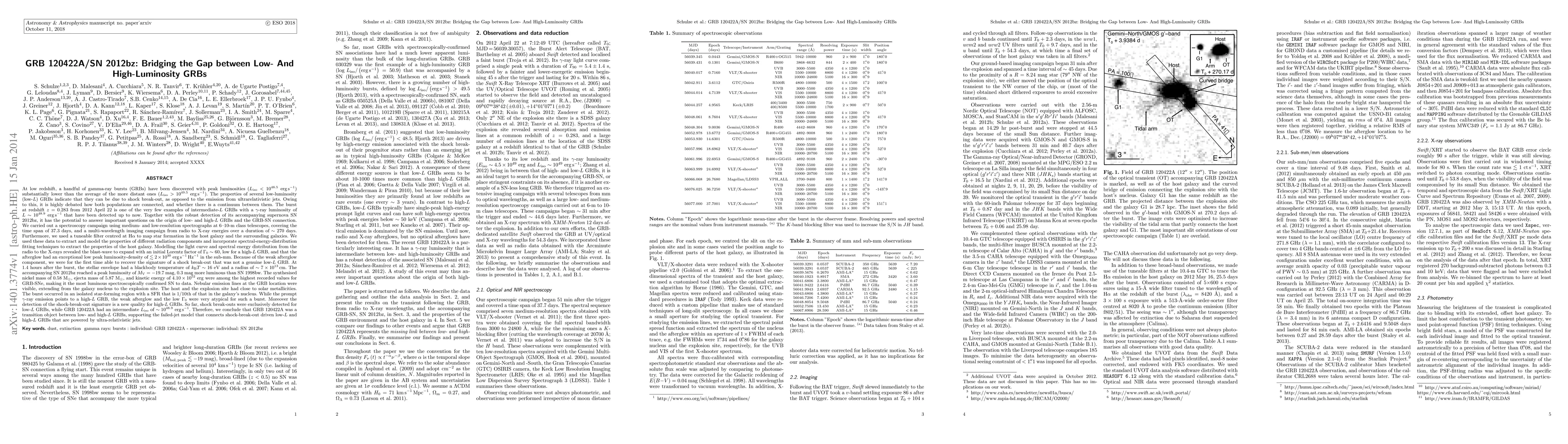 This paper investigates the gamma-ray burst (GRB) 120422A and its accompanying supernova SN 2012bz, aiming to bridge the gap between low- and high-luminosity GRBs. The study reveals an intermediate-luminosity GRB with a unique low peak luminosity, suggesting a continuum between low- and high-luminosity GRB populations, and provides insights into the GRB-SN connection.