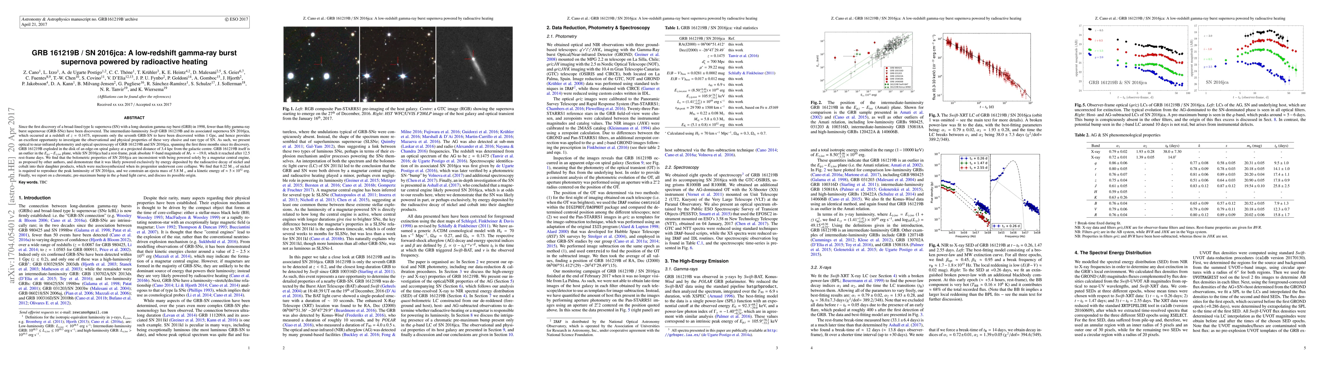 A low-redshift gamma-ray burst supernova, GRB 161219B / SN 2016jca, was discovered, providing insights into the rare type of explosion powered by radioactive heating, with nickel and cobalt playing a key role in its energy production.