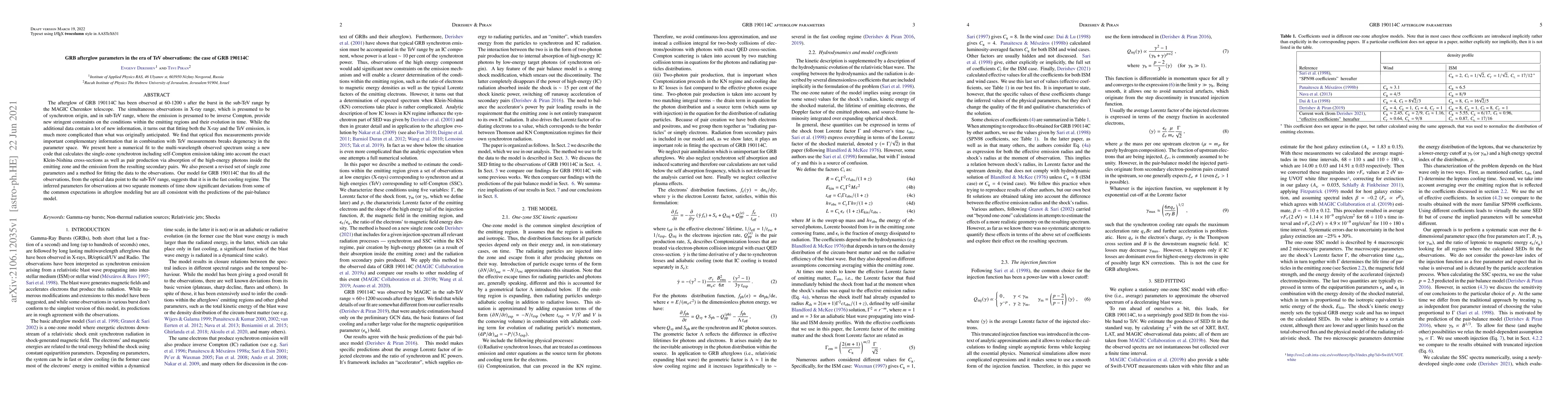 The afterglow of GRB~190114C has been observed at {60-1200~s} after the burst in the {sub-TeV range} by the {MAGIC Cherenkov} telescope. The simultaneous observations in X-ray range, which is presumed to be of synchrotron origin, and in sub-TeV range, where the emission is presumed to be inverse Compton, provide new stringent constraints on the conditions within the emitting regions {and their evolution in time}. While the additional data contain a lot of new information, it turns out that fitting both the X-ray and the TeV emission, is much more complicated than what was originally anticipated. We find that optical flux measurements provide important complementary information that in combination with TeV measurements breaks degeneracy in the parameter space. We present here a numerical fit to the multi-wavelength observed spectrum using a new code that calculates the single-zone synchrotron including self-Compton emission taking into account the exact Klein-Nishina cross-sections as well as pair production via absorption of the high-energy photons inside the emitting zone and the emission from the resulting secondary pairs. We also present a revised set of single zone parameters and a method for fitting the data to the observations. Our model for GRB~190114C that fits all the observations, from the optical data point to the sub-TeV range, suggests that it is in the fast cooling regime. The inferred parameters for observations {at two separate moments of time} show significant deviations from some of the common expectations in afterglow modeling but are all consistent with the predictions of the {pair-balance} model.