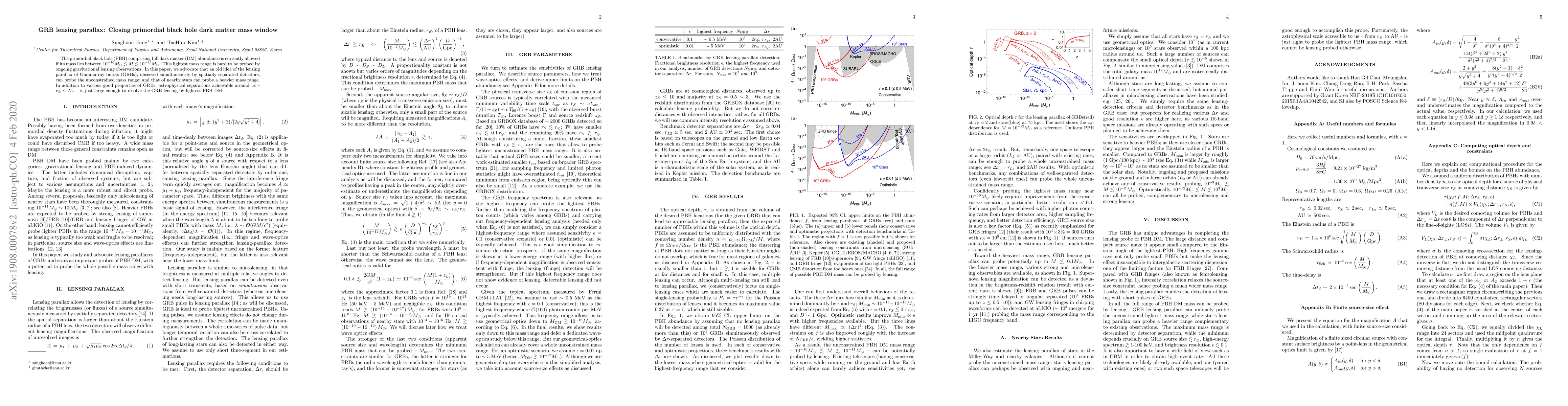 The primordial black hole (PBH) comprising full dark matter (DM) abundance is currently allowed if its mass lies between $10^{-16}M_{\odot} \lesssim M \lesssim 10^{-11} M_{\odot}$. This lightest mass range is hard to be probed by ongoing gravitational lensing observations. In this paper, we advocate that an old idea of the lensing parallax of Gamma-ray bursts (GRBs), observed simultaneously by spatially separated detectors, can probe the unconstrained mass range; and that of nearby stars can probe a heavier mass range. In addition to various good properties of GRBs, astrophysical separations achievable around us --- $r_\oplus \text{--}$ AU --- is just large enough to resolve the GRB lensing by lightest PBH DM.