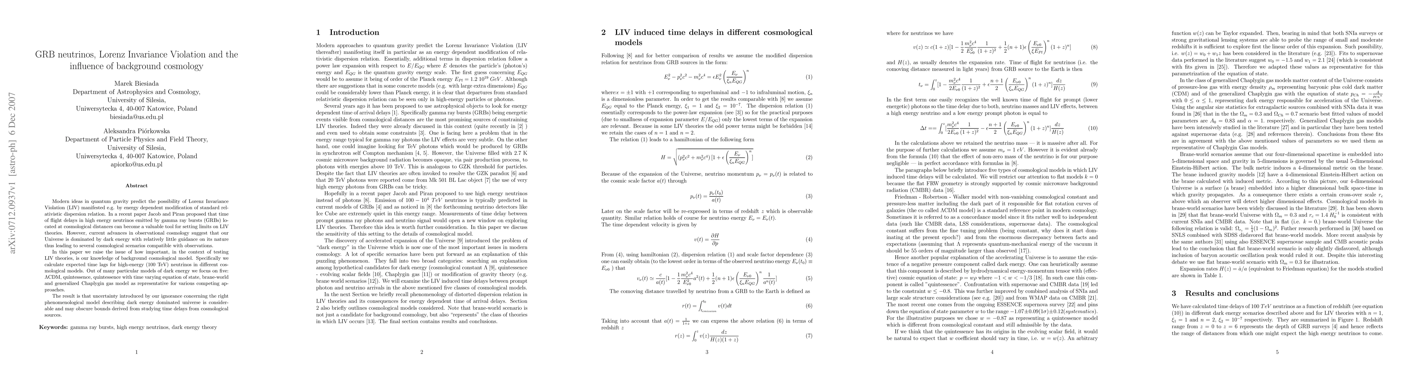 Modern ideas in quantum gravity predict the possibility of Lorenz Invariance Violation (LIV) manifested e.g. by energy dependent modification of standard relativistic dispersion relation. In a recent paper Jacob and Piran proposed that time of flight delays in high energy neutrinos emitted by gamma ray bursts (GRBs) located at cosmological distances can become a valuable tool for setting limits on LIV theories. However, current advances in observational cosmology suggest that our Universe is dominated by dark energy with relatively little guidance on its nature thus leading to several cosmological scenarios compatible with observations. In this paper we raise the issue of how important, in the context of testing LIV theories, is our knowledge of background cosmological model. Specifically we calculate expected time lags for high-energy (100 TeV) neutrinos in different cosmological models. Out of many particular models of dark energy we focus on five: $\Lambda$CDM, quintessence, quintessence with time varying equation of state, brane-world and generalized Chaplygin gas model as representative for various competing approaches. The result is that uncertainty introduced by our ignorance concerning the right phenomenological model describing dark energy dominated universe is considerable and may obscure bounds derived from studying time delays from cosmological sources.