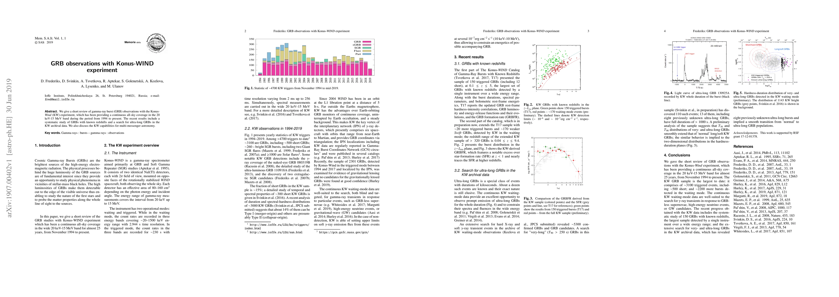 Researchers analyzed 25 years of Konus-WIND data to study gamma-ray bursts (GRBs) with known redshifts and search for ultra-long GRBs, providing new insights into these cosmic events.