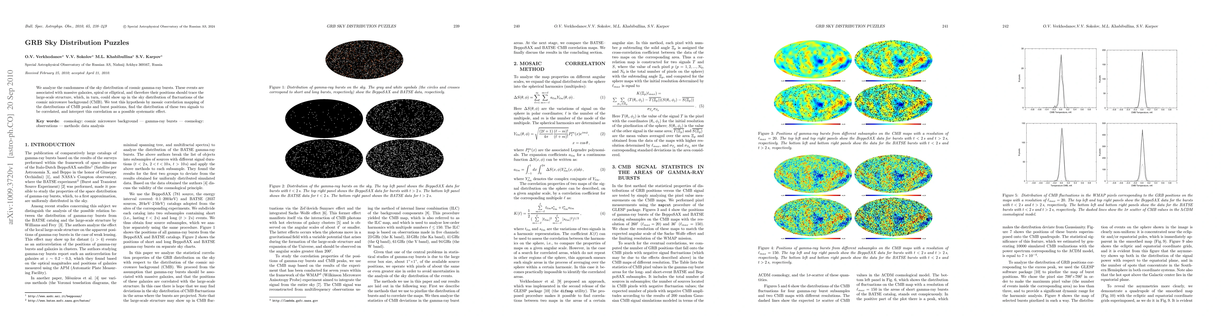 We analyze the randomness of the sky distribution of cosmic gamma-ray bursts. These events are associated with massive galaxies, spiral or elliptical, and therefore their positions should trace the large-scale structure, which, in turn, could show up in the sky distribution of fluctuations of the cosmic microwave background (CMB). We test this hypothesis by mosaic correlation mapping of the distributions of CMB peaks and burst positions, find the distribution of these two signals to be correlated, and interpret this correlation as a possible systematic effect.