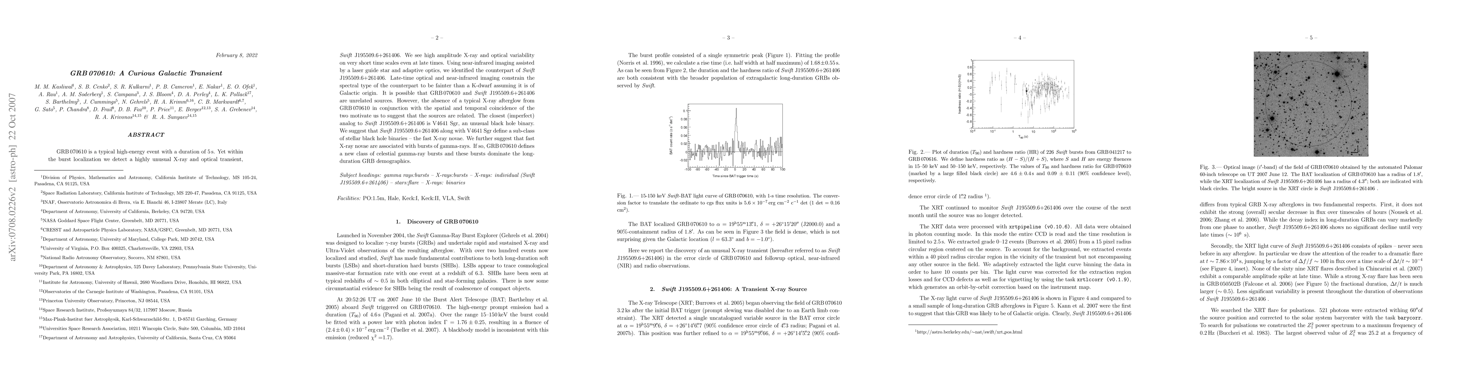 GRB 070610 is a typical high-energy event with a duration of 5s.Yet within the burst localization we detect a highly unusual X-ray and optical transient, SwiftJ195509.6+261406. We see high amplitude X-ray and optical variability on very short time scales even at late times. Using near-infrared imaging assisted by a laser guide star and adaptive optics, we identified the counterpart of SwiftJ195509.6+261406. Late-time optical and near-infrared imaging constrain the spectral type of the counterpart to be fainter than a K-dwarf assuming it is of Galactic origin. It is possible that GRB 070610 and Swift J195509.6+261406 are unrelated sources. However, the absence of a typical X-ray afterglow from GRB 070610 in conjunction with the spatial and temporal coincidence of the two motivate us to suggest that the sources are related. The closest (imperfect) analog to Swift J195509.6+261406 is V4641 Sgr, an unusual black hole binary. We suggest that Swift J195509.6+261406 along with V4641 Sgr define a sub-class of stellar black hole binaries -- the fast X-ray novae. We further suggest that fast X-ray novae are associated with bursts of gamma-rays. If so, GRB 070610 defines a new class of celestial gamma-ray bursts and these bursts dominate the long-duration GRB demographics