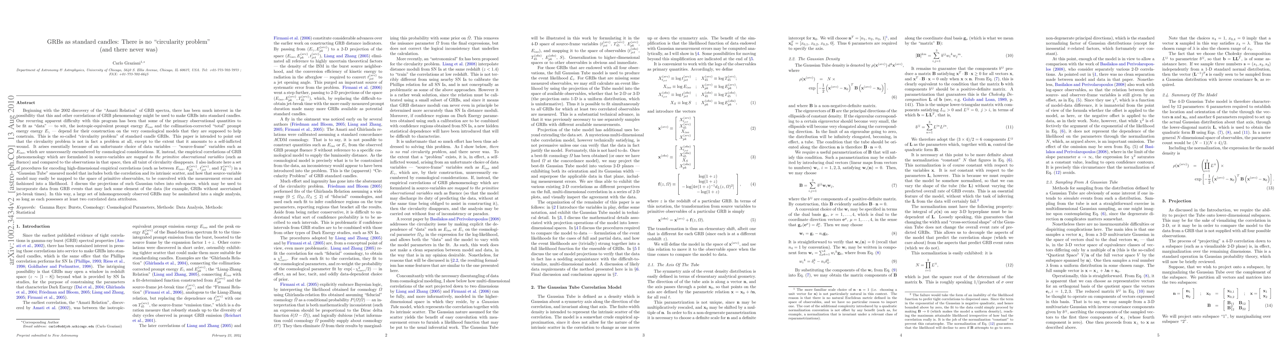 The 2002 discovery of the "Amati Relation" of GRB spectra created the possibility that this and other correlations of GRB phenomenology might be used to make GRBs into standard candles. One recurring apparent difficulty with this program has been that some of the primary observational quantities to be fit as "data" - the isotropic-equivalent prompt energy $E_{iso}$ and the collimation-corrected "total" prompt energy energy $E_{\gamma}$ - depend for their construction on the very cosmological models that they are supposed to help constrain. This is the so-called "circularity problem" of standard candle GRBs. This paper is intended to point out that the circularity problem is not in fact a problem at all, except to the extent that it amounts to a self-inflicted wound. It arises essentially because of an unfortunate choice of data variables, such as $E_{iso}$, which are unnecessarily model-dependent. If, instead, the empirical correlations of GRB phenomenology which are formulated in source-variables are {\it mapped to the primitive observational variables} (such as fluence) and compared to the observations in that space, then all circularity disappears. I also indicate here a set of procedures for encoding high-dimensional empirical correlations in a "Gaussian Tube" smeared model that includes both the correlation and its intrinsic scatter, and how that source-variable model may easily be mapped to the space of primitive observables and fashioned into a likelihood. I discuss the projections of such Gaussian tubes into sub-spaces, which may be used to incorporate data from GRB events that may lack some element of the data (for example, GRBs without ascertained jet-break times). In this way, a large set of inhomogeneously observed GRBs may be assimilated into a single analysis, so long as each possesses at least two correlated data attributes.