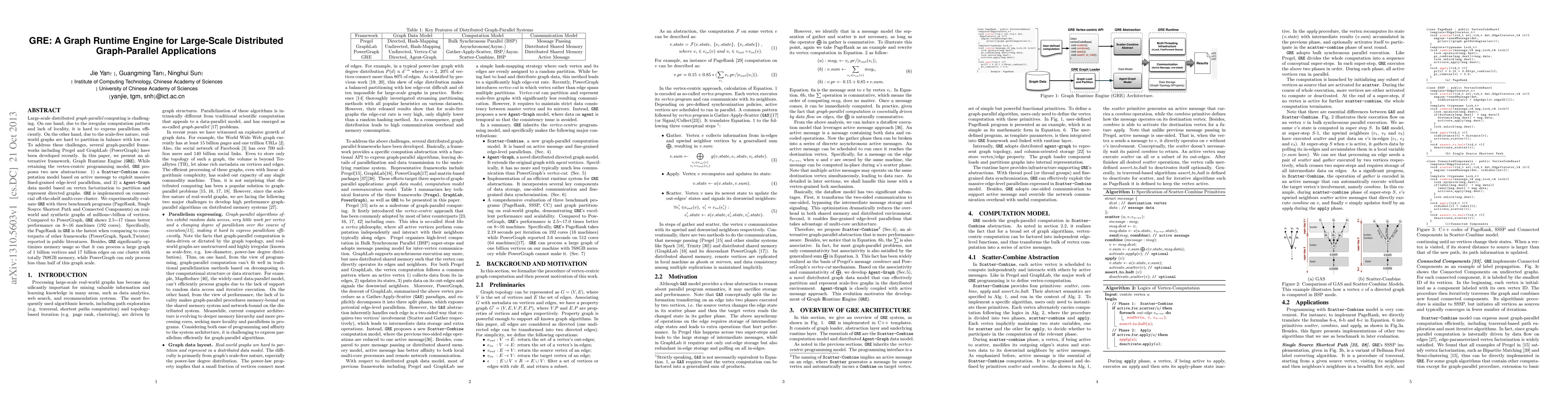 The paper introduces the Graph Runtime Engine (GRE), a framework designed to tackle the challenges of large-scale distributed graph-parallel computing through two new abstractions: a Scatter-Combine computation model and an Agent-Graph data model. Experimental results show GRE significantly outperforms PowerGraph in both performance and memory efficiency, processing larger graphs on a multi-core cluster.
