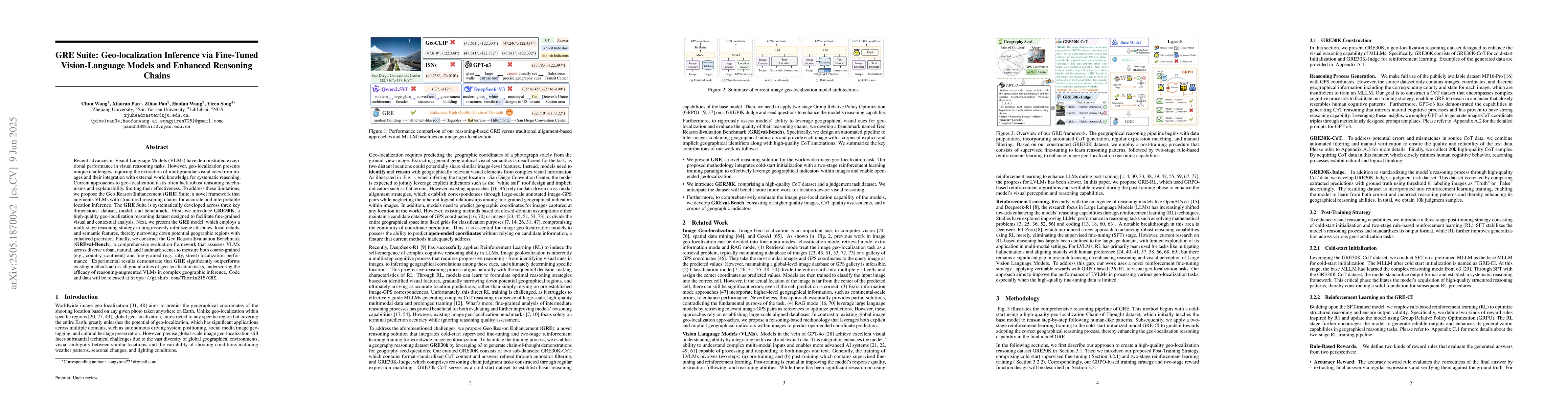 The research proposes the Geo Reason Enhancement (GRE) Suite, a framework that augments Visual Language Models (VLMs) with structured reasoning chains for geo-localization tasks. It introduces GRE30K, a geo-localization reasoning dataset, presents the GRE model with a multi-stage reasoning strategy, and constructs the Geo Reason Evaluation Benchmark (GREval-Bench) for comprehensive assessment.