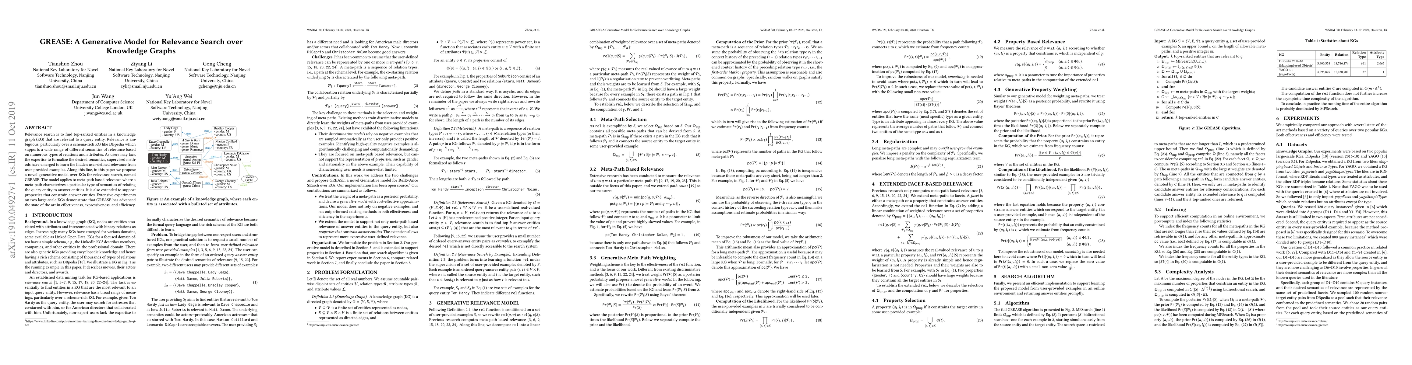 GREASE is a generative model that learns to rank relevant entities in knowledge graphs based on user-provided examples, outperforming existing methods in effectiveness, expressiveness, and efficiency.