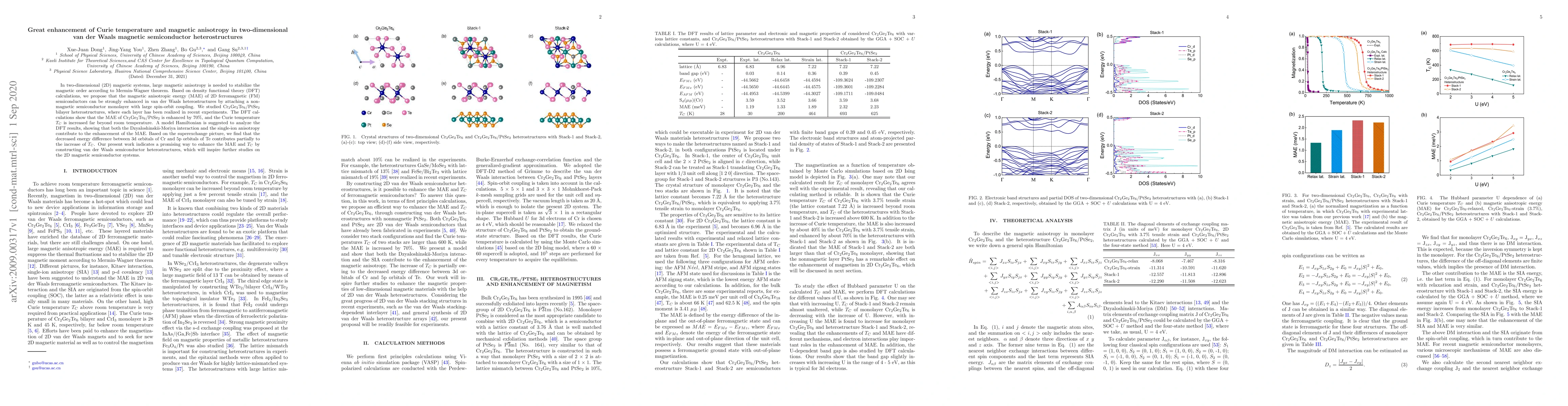 This paper proposes that van der Waals heterostructures combining Cr2Ge2Te6 and PtSe2 can significantly enhance magnetic anisotropy and Curie temperature in 2D ferromagnetic semiconductors. Density functional theory calculations show a 70% increase in magnetic anisotropic energy and a substantial rise in Curie temperature, driven by Dzyaloshinskii-Moriya interaction and single-ion anisotropy.