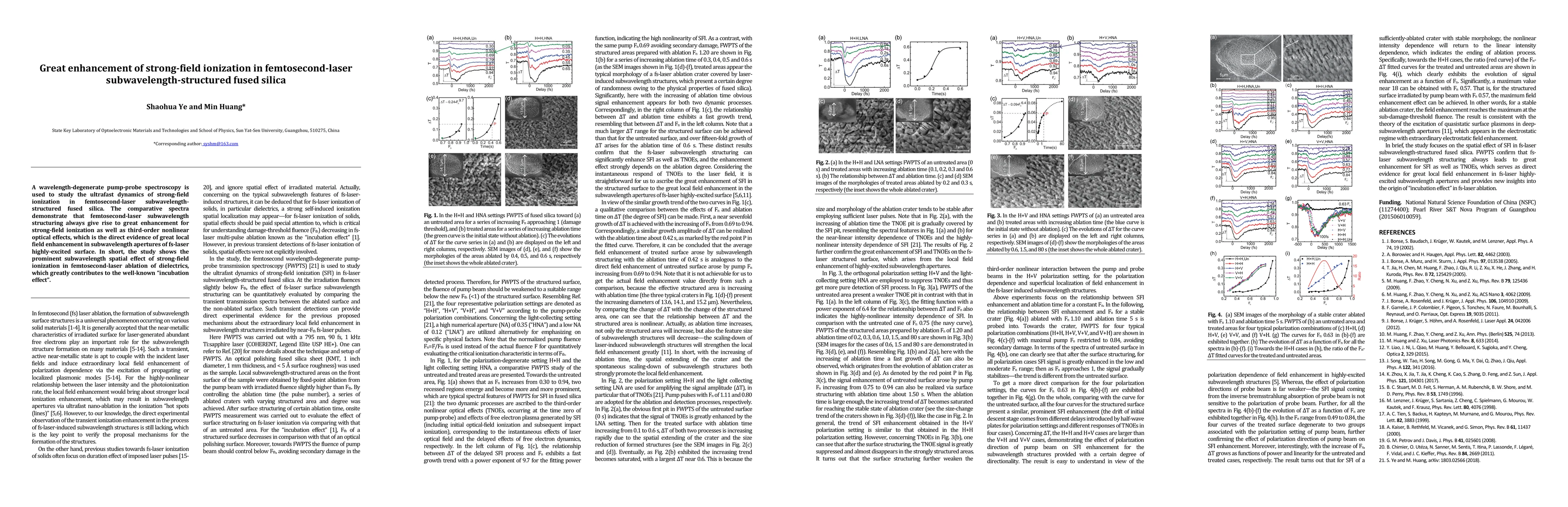 This research demonstrates that femtosecond-laser subwavelength structuring significantly enhances strong-field ionization and third-order nonlinear optical effects in fused silica, providing evidence of local field enhancement in fs-laser-excited surface structures. The study highlights the spatial effects of strong-field ionization during the "incubation effect" in dielectric ablation.