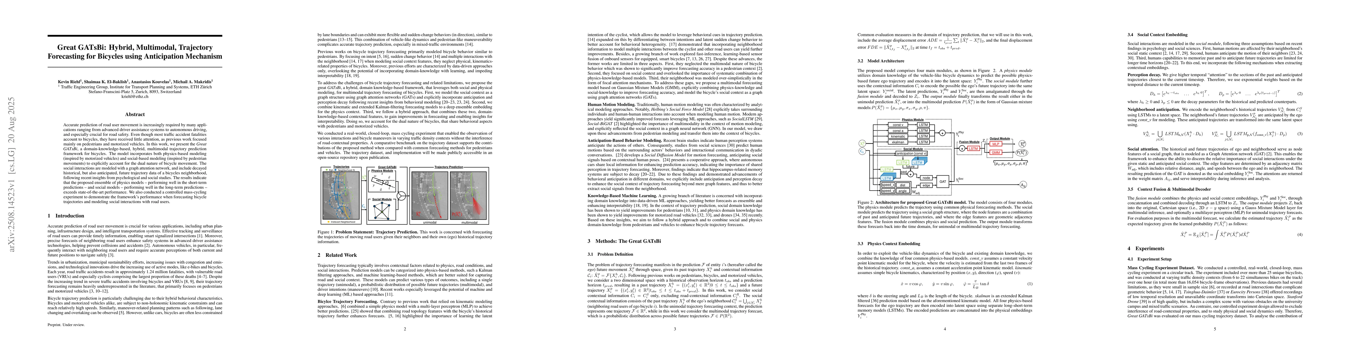 The paper presents a novel hybrid, multimodal trajectory prediction framework for bicycles, Great GATsBi, which integrates physics-based and social-based modeling with an anticipation mechanism to account for the dual nature of bicycle movement.