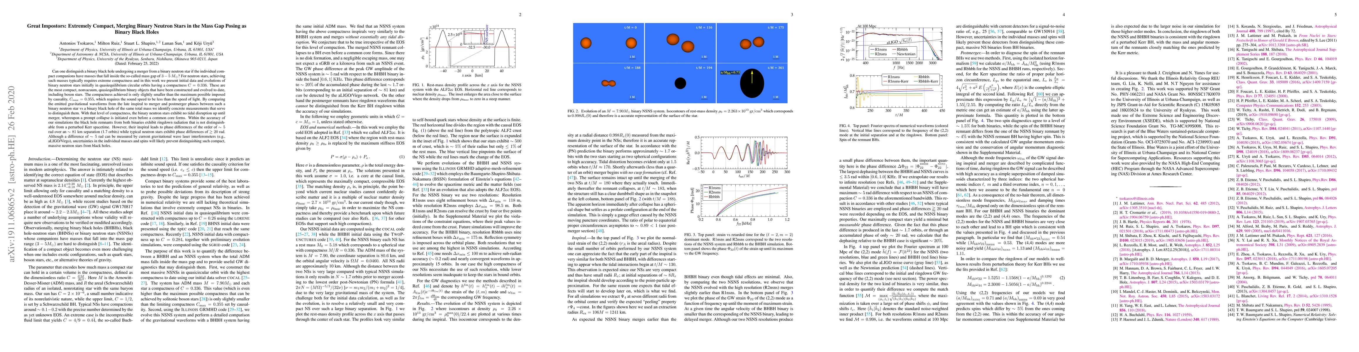 This research introduces the concept of 'Great Impostors' - extremely compact merging binary neutron stars that mimic binary black hole mergers, filling the mass gap region and providing a novel perspective on distinguishing between these two types of compact objects through their gravitational wave signatures.