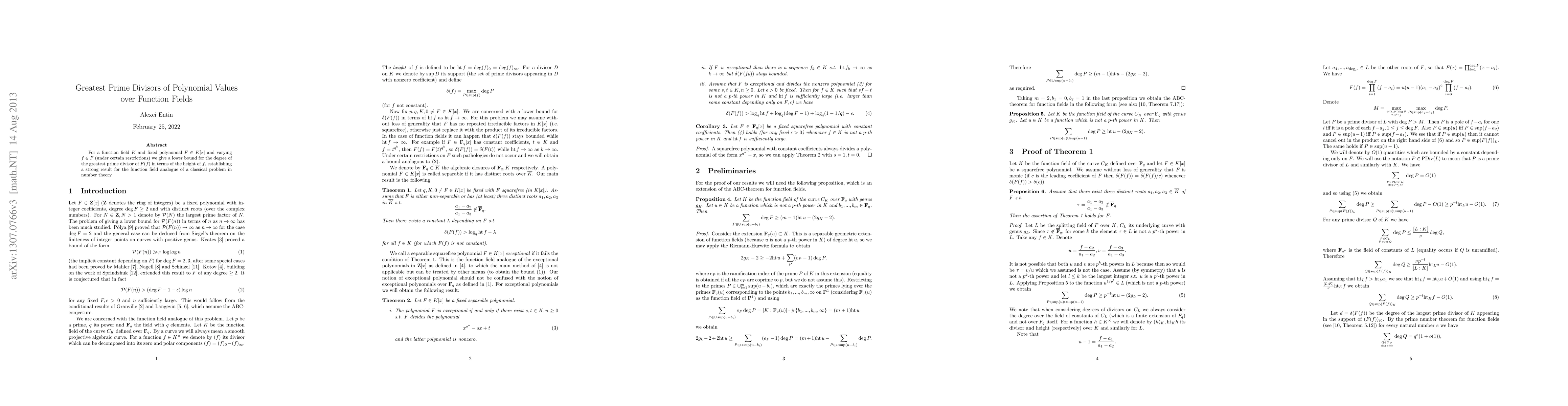 Researchers establish a lower bound for the degree of the greatest prime divisor of polynomial values over function fields, relating it to the height of varying polynomials.