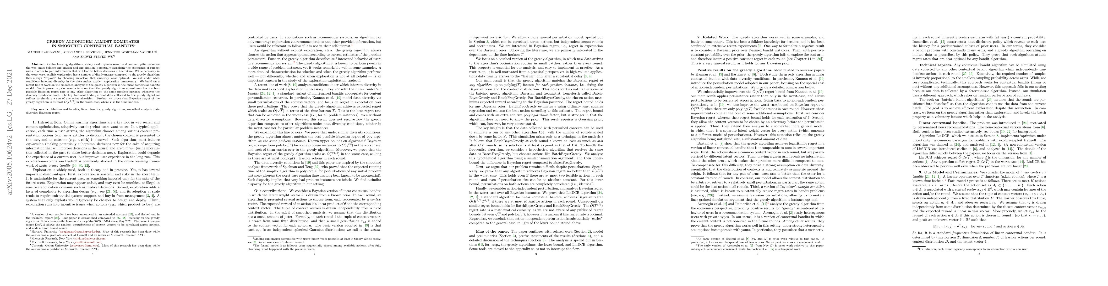 This paper investigates the performance of greedy algorithms in smoothed contextual bandits, demonstrating that under conditions of inherent data diversity, the greedy approach nearly matches the optimal Bayesian regret rate, achieving a regret of $\tilde O(T^{1/3})$. It suggests that explicit exploration may be unnecessary when data diversity is present.