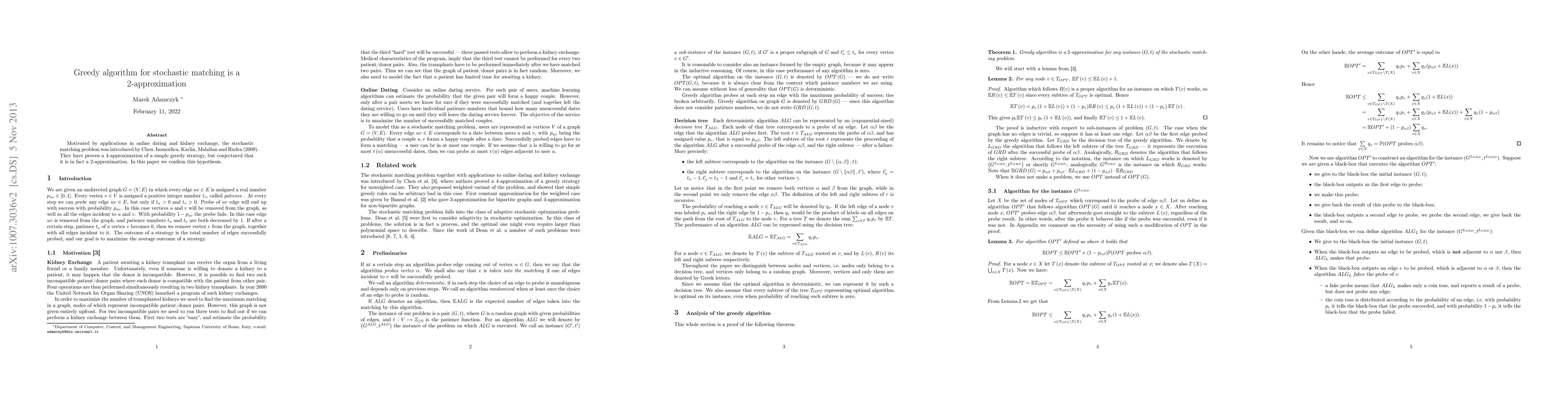 This paper confirms the conjecture that a simple greedy algorithm for the stochastic matching problem is a 2-approximation, addressing applications in online dating and kidney exchange. The authors validate the earlier 4-approximation result and provide stronger evidence for the algorithm's efficiency.
