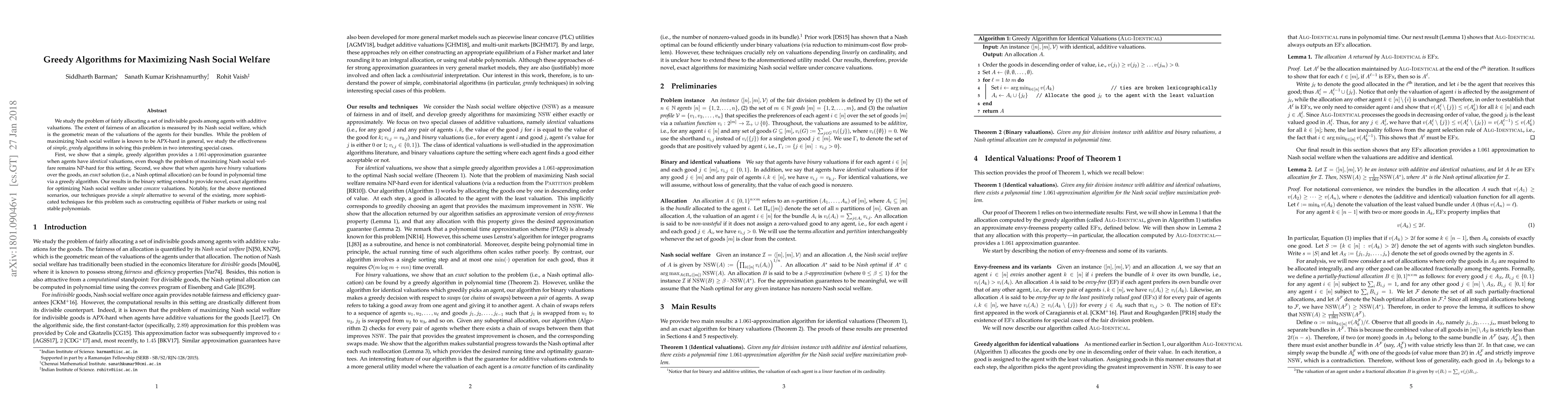 This paper explores the use of greedy algorithms to maximize Nash social welfare in fair allocation problems, achieving a 1.061-approximation for identical agent valuations and exact solutions for binary valuations, offering simpler alternatives to complex existing methods.