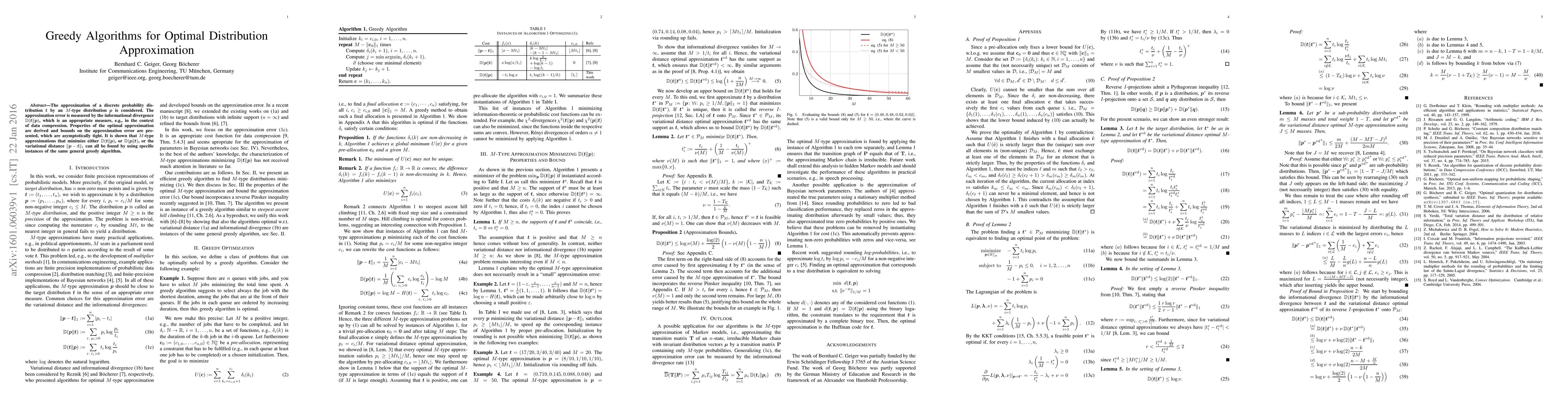A greedy algorithm is used to approximate a discrete probability distribution with high accuracy, minimizing error measures such as information divergence and variational distance.