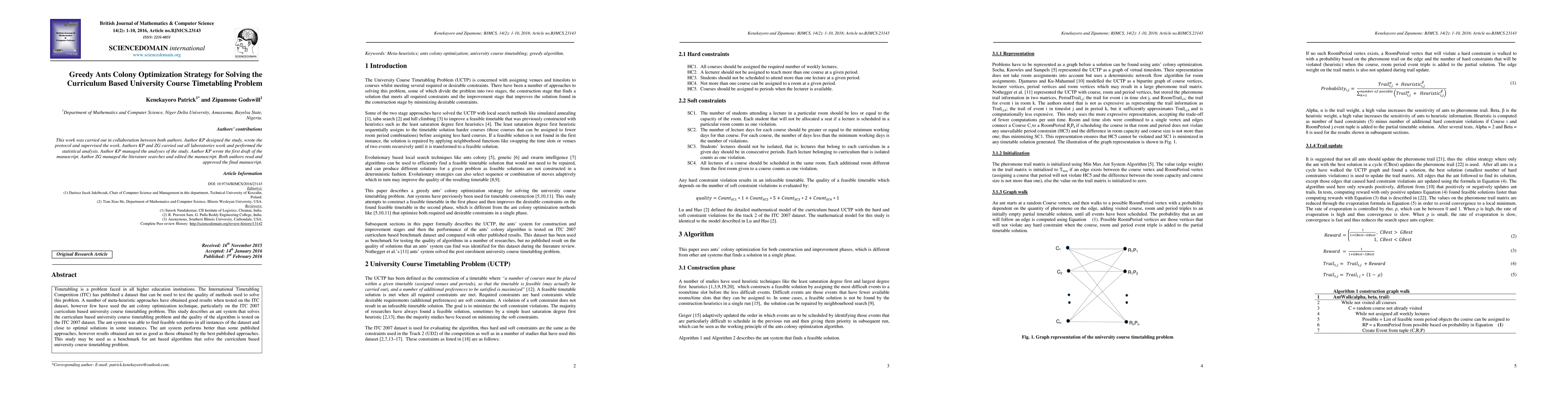 This paper proposes a Greedy Ants Colony Optimization Strategy to tackle the curriculum-based university course timetabling problem, tested on the ITC 2007 dataset. The ant system finds feasible solutions and performs better than some existing methods, though it falls short of the best-published results.