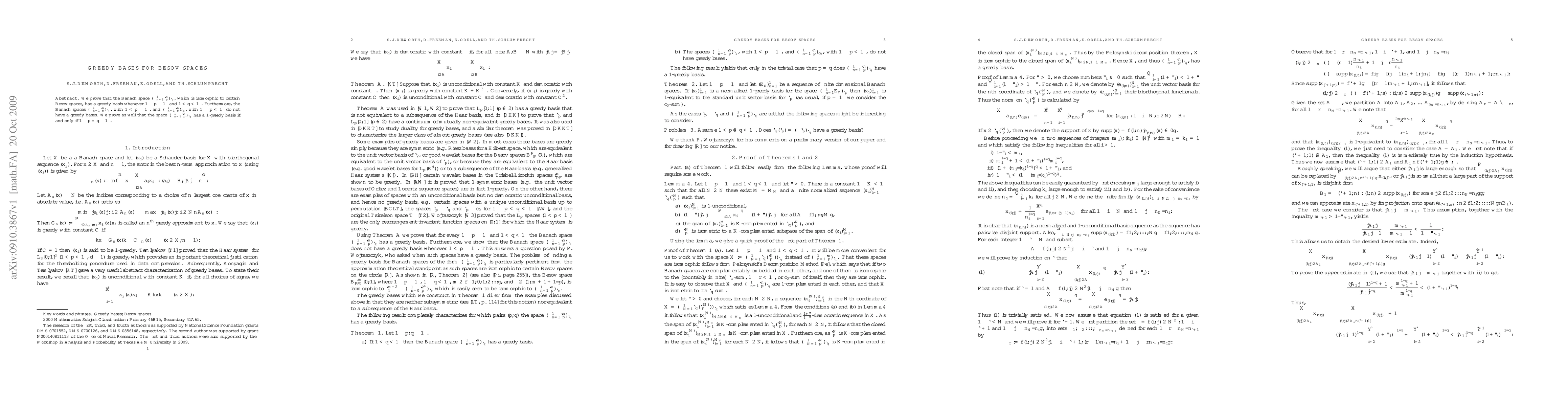 which is isomorphic to certain Besov spaces, has a greedy basis whenever $1\leq