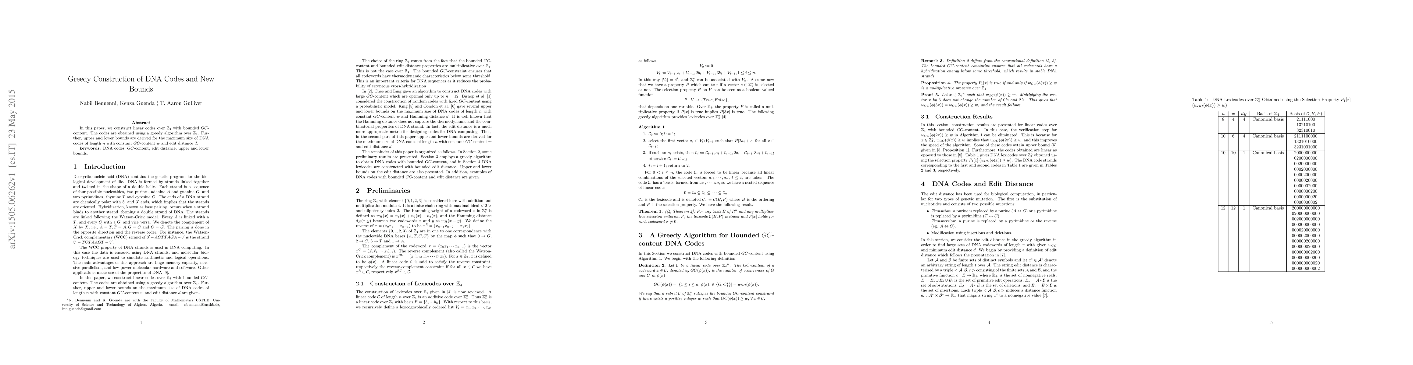 In this paper, we construct linear codes over $\mathbb{Z}_4$ with bounded $GC$-content. The codes are obtained using a greedy algorithm over $\mathbb{Z}_4$. Further, upper and lower bounds are derived for the maximum size of DNA codes of length $n$ with constant $GC$-content $w$ and edit distance $d$.
