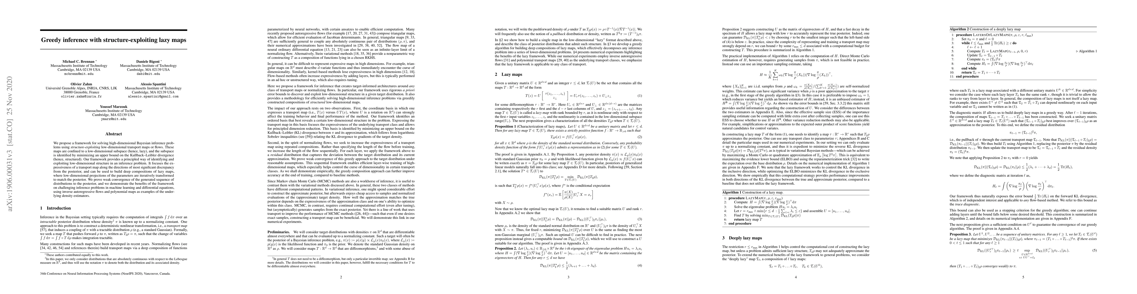 Researchers develop a framework to solve high-dimensional Bayesian inference problems using low-dimensional transport maps that exploit structure in the data. They demonstrate its effectiveness on challenging machine learning and differential equations problems.