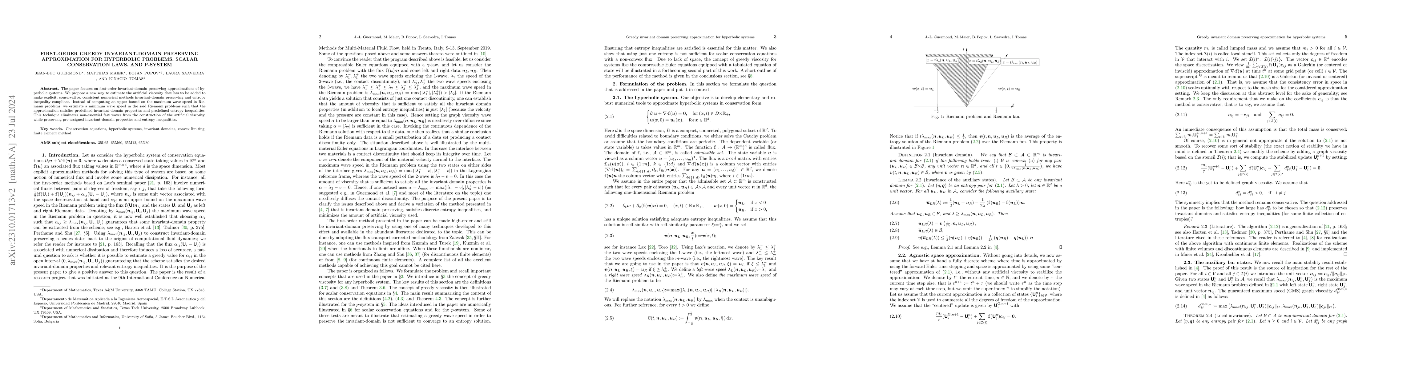 The paper introduces a novel method for estimating artificial viscosity in hyperbolic systems to ensure invariant-domain preservation and compliance with entropy inequalities, by estimating minimum rather than maximum wave speeds in Riemann problems. This approach effectively filters out unnecessary fast waves while maintaining desired properties.