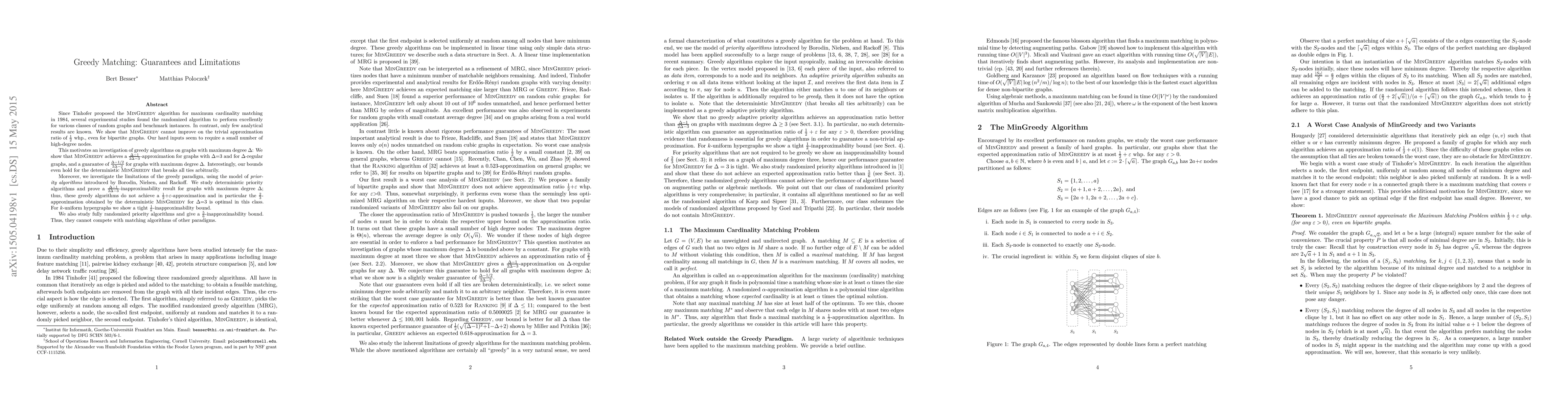 Since Tinhofer proposed the MinGreedy algorithm for maximum cardinality matching in 1984, several experimental studies found the randomized algorithm to perform excellently for various classes of random graphs and benchmark instances. In contrast, only few analytical results are known. We show that MinGreedy cannot improve on the trivial approximation ratio 1/2 whp., even for bipartite graphs. Our hard inputs seem to require a small number of high-degree nodes. This motivates an investigation of greedy algorithms on graphs with maximum degree D: We show that MinGreedy achieves a (D-1)/(2D-3)-approximation for graphs with D=3 and for D-regular graphs, and a guarantee of (D-1/2)/(2D-2) for graphs with maximum degree D. Interestingly, our bounds even hold for the deterministic MinGreedy that breaks all ties arbitrarily. Moreover, we investigate the limitations of the greedy paradigm, using the model of priority algorithms introduced by Borodin, Nielsen, and Rackoff. We study deterministic priority algorithms and prove a (D-1)/(2D-3)-inapproximability result for graphs with maximum degree D; thus, these greedy algorithms do not achieve a 1/2+eps-approximation and in particular the 2/3-approximation obtained by the deterministic MinGreedy for D=3 is optimal in this class. For k-uniform hypergraphs we show a tight 1/k-inapproximability bound. We also study fully randomized priority algorithms and give a 5/6-inapproximability bound. Thus, they cannot compete with matching algorithms of other paradigms.