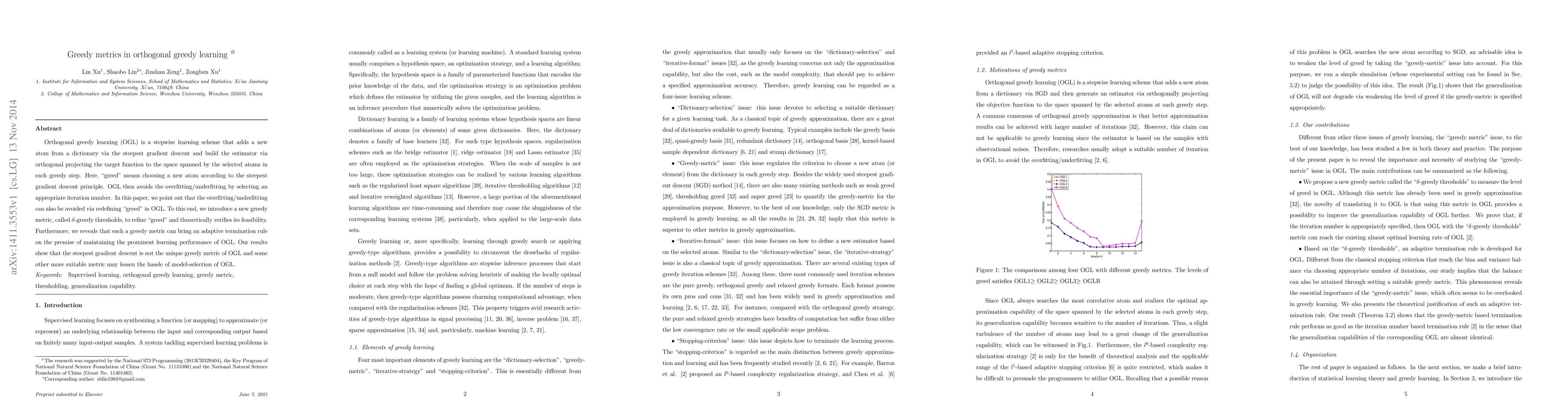 This paper introduces a new $\delta$-greedy threshold metric to refine orthogonal greedy learning (OGL) and proposes it as an alternative to the steepest gradient descent method. It demonstrates that this new greedy metric can provide an adaptive termination rule while maintaining OGL's learning performance, suggesting that other metrics may offer better model selection for OGL.