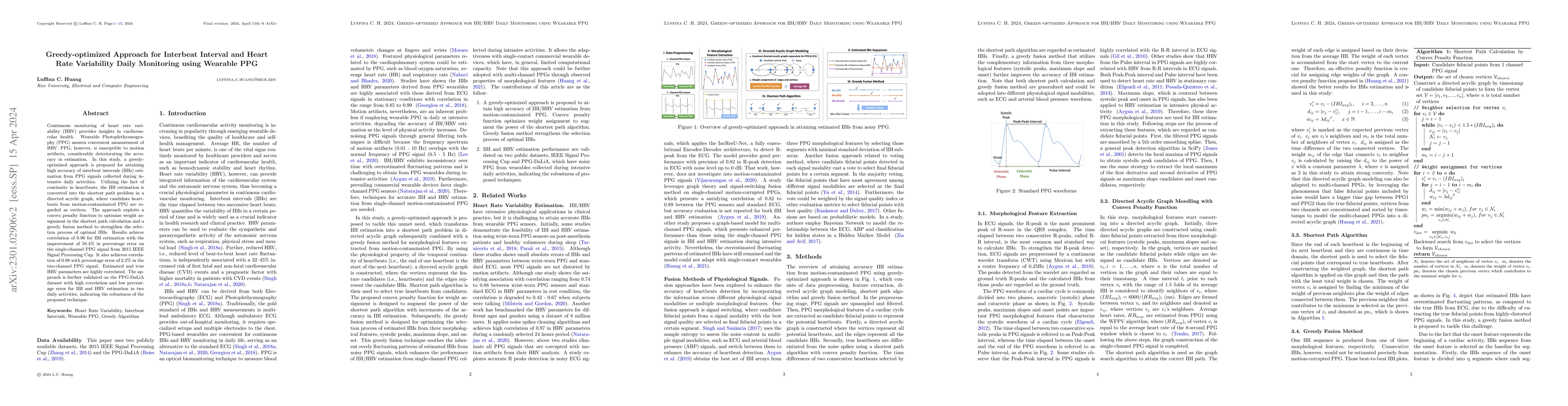 Continuous monitoring of heart rate variability (HRV) provides insights in cardiovascular health. Wearable Photoplethysmography (PPG) assures convenient measurement of HRV. PPG, however, is susceptible to motion artifacts, considerably deteriorating the accuracy in estimation. In this study, a greedy-optimized approach is proposed for attaining high accuracy of interbeat intervals (IBIs) estimation from PPG signals collected during intensive daily activities. Utilizing the fact of continuity in heartbeats, the IBI estimation is converted into the shortest path problem in a directed acyclic graph, where candidate heartbeats from motion-contaminated PPG are regarded as vertices. The approach exploits a convex penalty function to optimize weight assignment in the shortest path calculation and a greedy fusion method to strengthen the selection process of optimal IBIs. Results achieve correlation of 0.96 for IBI estimation with the improvement of 58.4% in percentage error on the single-channel PPG signal from 2015 IEEE Signal Processing Cup. It also achieves correlation of 0.98 with percentage error of 2.2% in the two-channel PPG signal. Estimated and true HRV parameters are highly correlated. The approach is further validated on the PPG-DaLiA dataset with high correlation and low percentage error for IBI and HRV estimation in two daily activities, indicating the robustness of the proposed technique.