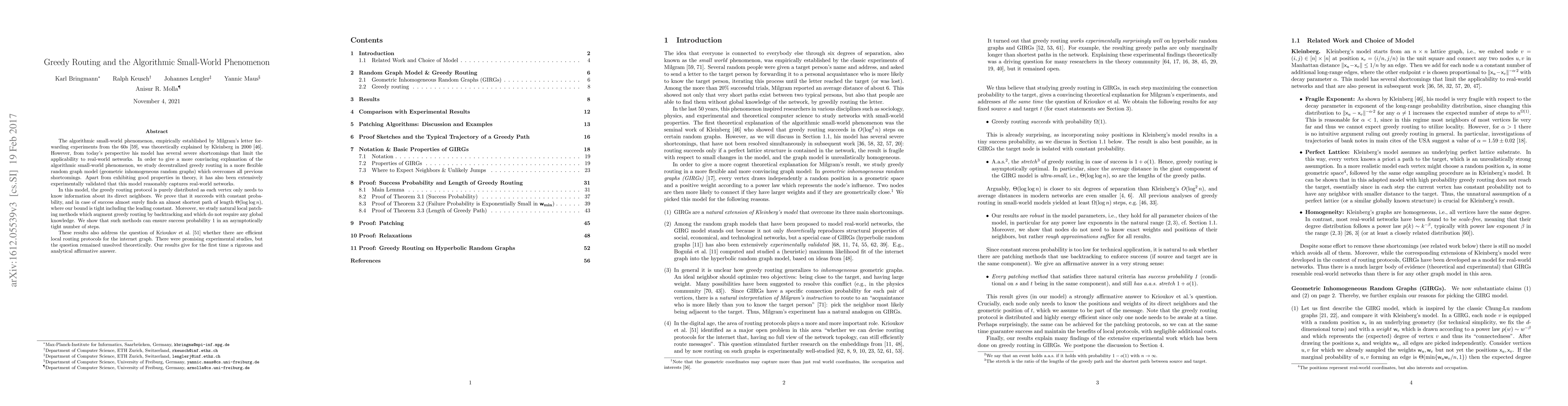 The algorithmic small-world phenomenon, empirically established by Milgram's letter forwarding experiments from the 60s, was theoretically explained by Kleinberg in 2000. However, from today's perspective his model has several severe shortcomings that limit the applicability to real-world networks. In order to give a more convincing explanation of the algorithmic small-world phenomenon, we study decentralized greedy routing in a more flexible random graph model (geometric inhomogeneous random graphs) which overcomes all previous shortcomings. Apart from exhibiting good properties in theory, it has also been extensively experimentally validated that this model reasonably captures real-world networks. In this model, the greedy routing protocol is purely distributed as each vertex only needs to know information about its direct neighbors. We prove that it succeeds with constant probability, and in case of success almost surely finds an almost shortest path of length {\theta}(loglog n), where our bound is tight including the leading constant. Moreover, we study natural local patching methods which augment greedy routing by backtracking and which do not require any global knowledge. We show that such methods can ensure success probability 1 in an asymptotically tight number of steps. These results also address the question of Krioukov et al. whether there are efficient local routing protocols for the internet graph. There were promising experimental studies, but the question remained unsolved theoretically. Our results give for the first time a rigorous and analytical affirmative answer.