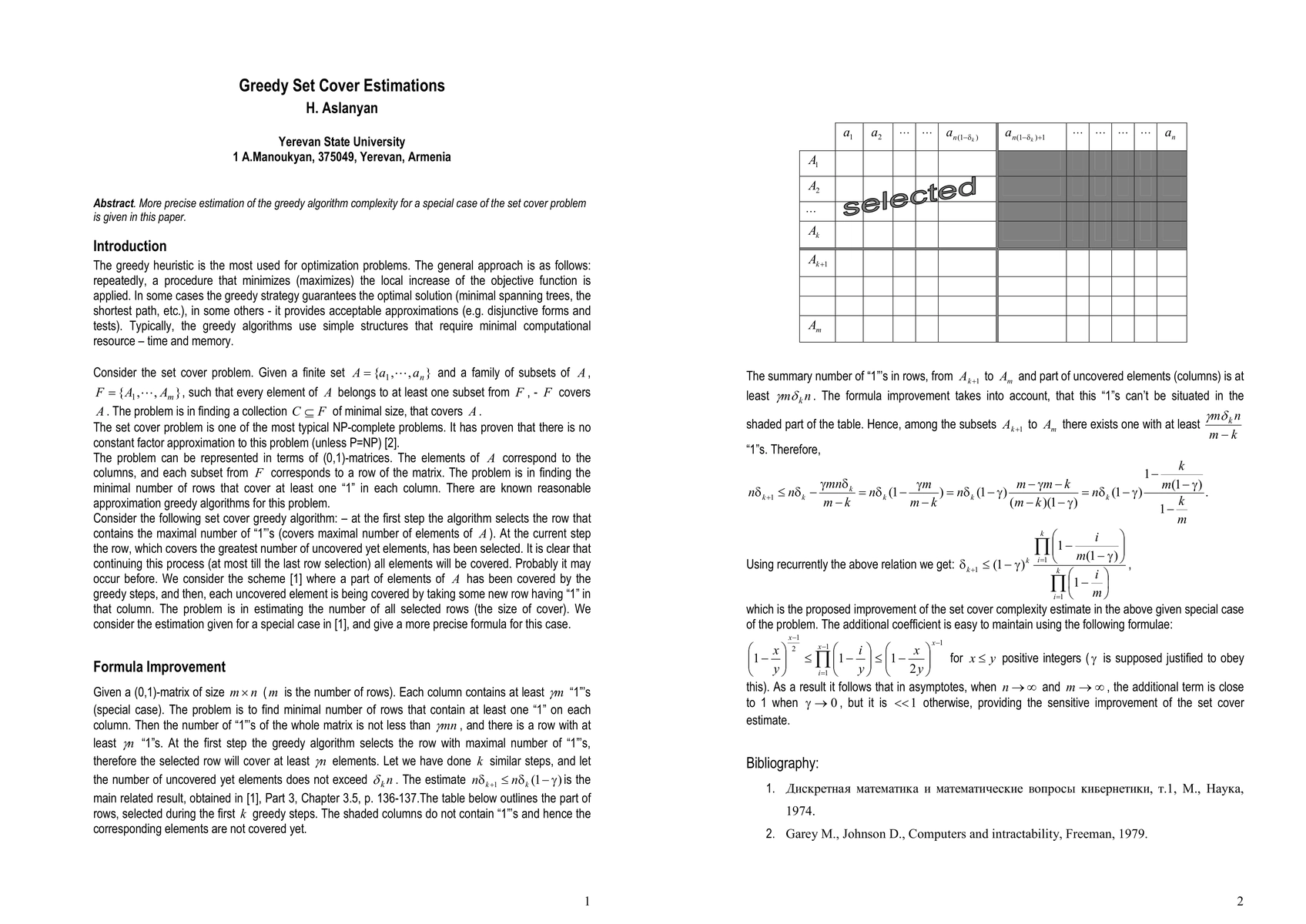 This paper provides a more precise estimation of the complexity of the greedy algorithm for a specific instance of the set cover problem, offering improved insights into its performance.