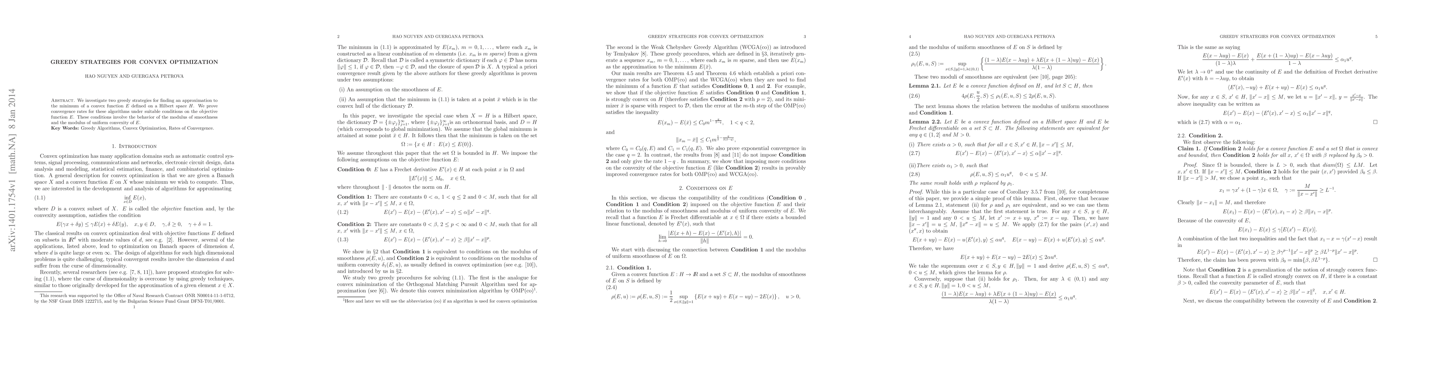 Researchers develop two greedy strategies for finding approximations to a convex function's minimum, proving convergence rates under specific conditions related to the function's smoothness and uniform convexity.