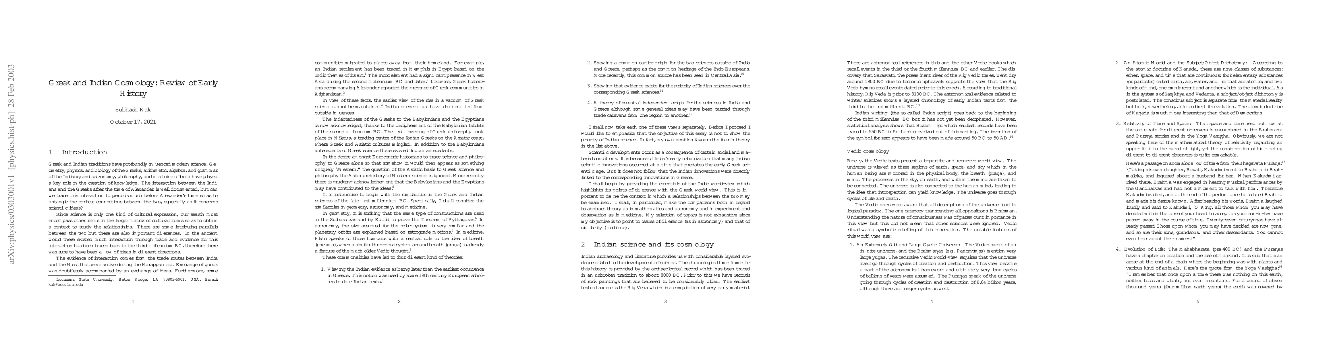 Greek and Indian cosmologies developed independently but were influenced after Alexander's time, with differences in focus and style due to distinct worldviews.