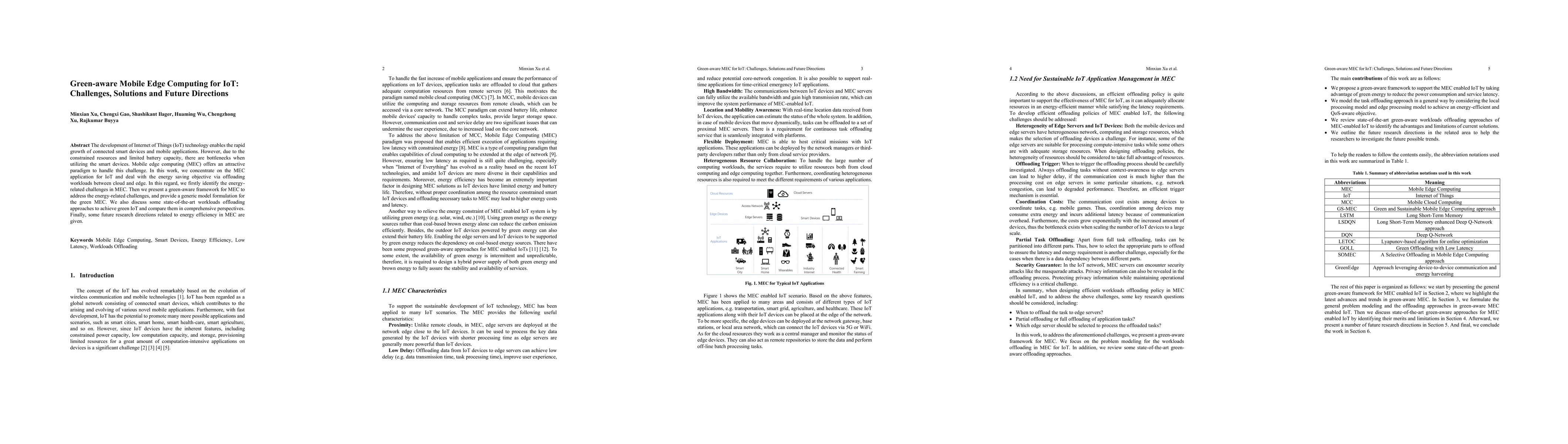 This paper explores the integration of green-aware Mobile Edge Computing (MEC) with IoT to tackle energy challenges associated with constrained smart devices. It proposes a framework for energy-efficient workload offloading between cloud and edge, reviews state-of-the-art offloading approaches, and discusses future research directions for enhancing energy efficiency in MEC.