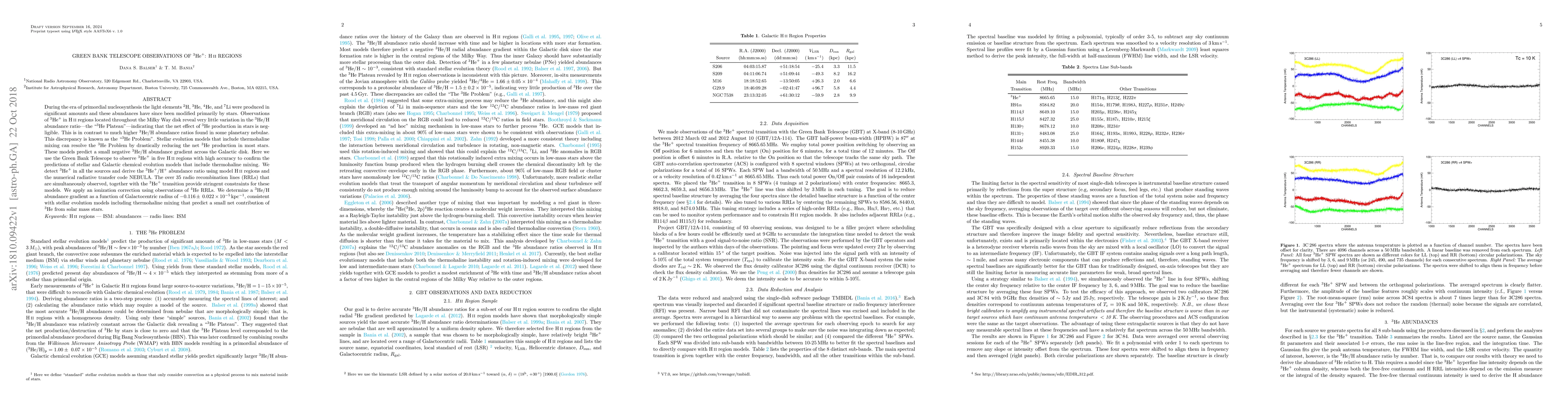 The research utilized the Green Bank Telescope to observe 3He+ emission in five HII regions across the Milky Way disk, employing the NEBULA radiative transfer code for modeling and deriving 3He+/H+ abundance ratios with high accuracy.