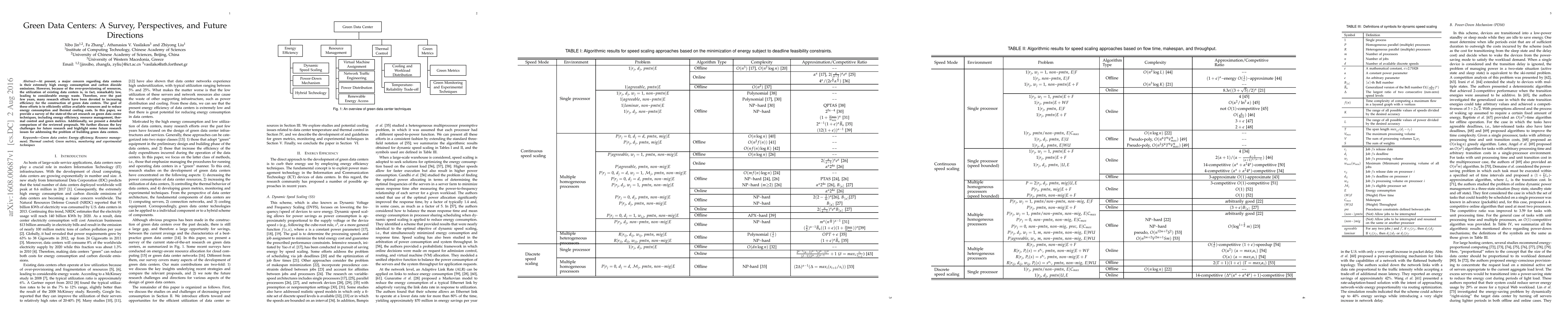 The paper provides a comprehensive survey of green data center techniques, including energy efficiency, resource management, thermal control, and green metrics. It compares reviewed proposals and discusses challenges and future research directions.