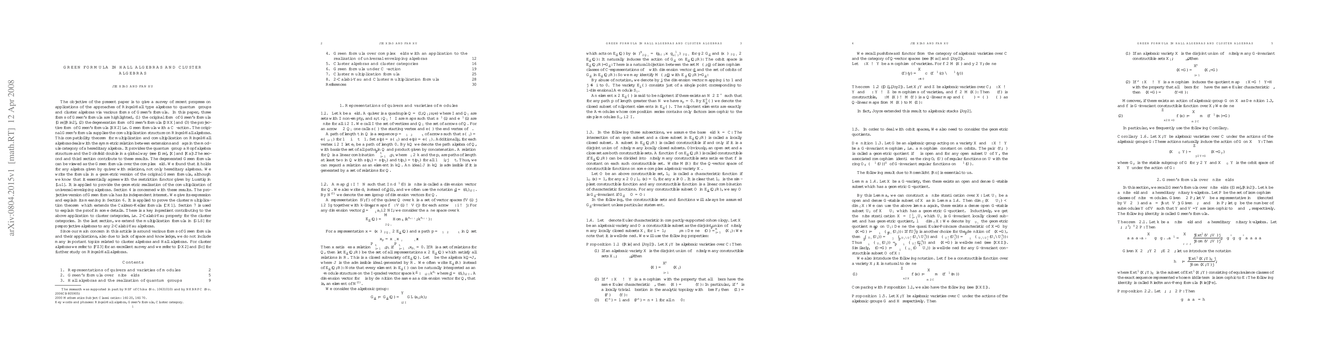 The objective of the present paper is to give a survey of recent progress on applications of the approaches of Ringel-Hall type algebras to quantum groups and cluster algebras via various forms of Green's formula. In this paper, three forms of Green's formula are highlighted, (1) the original form of Green's formula \cite{Green}\cite{RingelGreen}, (2) the degeneration form of Green's formula \cite{DXX} and (3) the projective form of Green's formula \cite{XX2007a} i.e. Green formula with a $\bbc^{*}$-action.