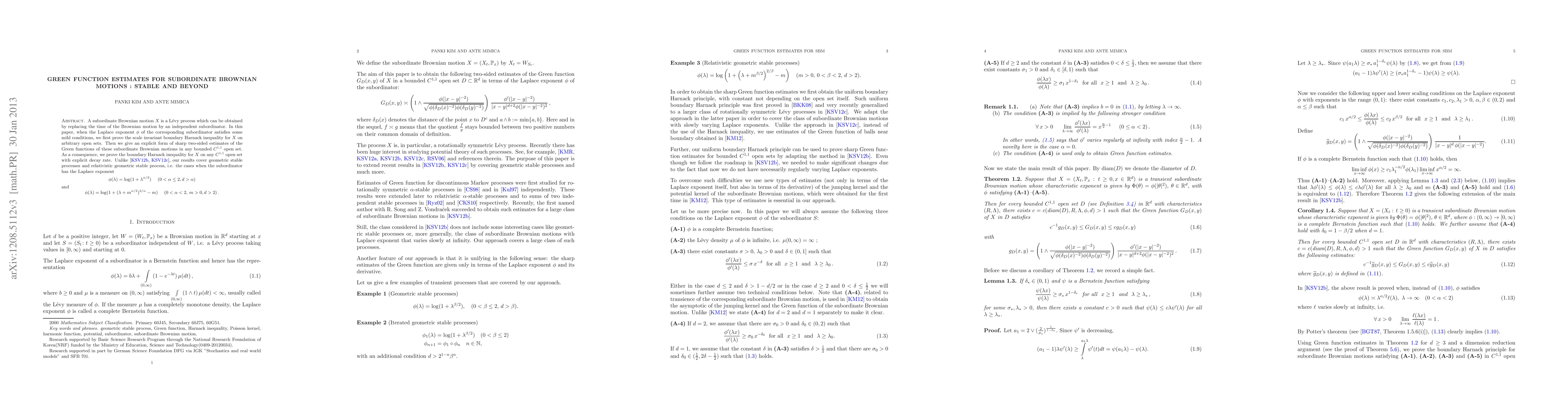 A subordinate Brownian motion $X$ is a L\'evy process which can be obtained by replacing the time of the Brownian motion by an independent subordinator. In this paper, when the Laplace exponent $\phi$ of the corresponding subordinator satisfies some mild conditions, we first prove the scale invariant boundary Harnack inequality for $X$ on arbitrary open sets. Then we give an explicit form of sharp two-sided estimates on the Green functions of these subordinate Brownian motions in any bounded $C^{1,1}$ open set. As a consequence, we prove the boundary Harnack inequality for $X$ on any $C^{1,1}$ open set with explicit decay rate. Unlike {KSV2, KSV4}, our results cover geometric stable processes and relativistic geometric stable process, i.e. the cases when the subordinator has the Laplace exponent $$\phi(\lambda)=\log(1+\lambda^{\alpha/2}) (0<\alpha\leq 2, d > \alpha)$$ and $$\phi(\lambda)=\log(1+(\lambda+m^{\alpha/2})^{2/\alpha}-m) (0<\alpha<2,\, m>0, d >2) .$$