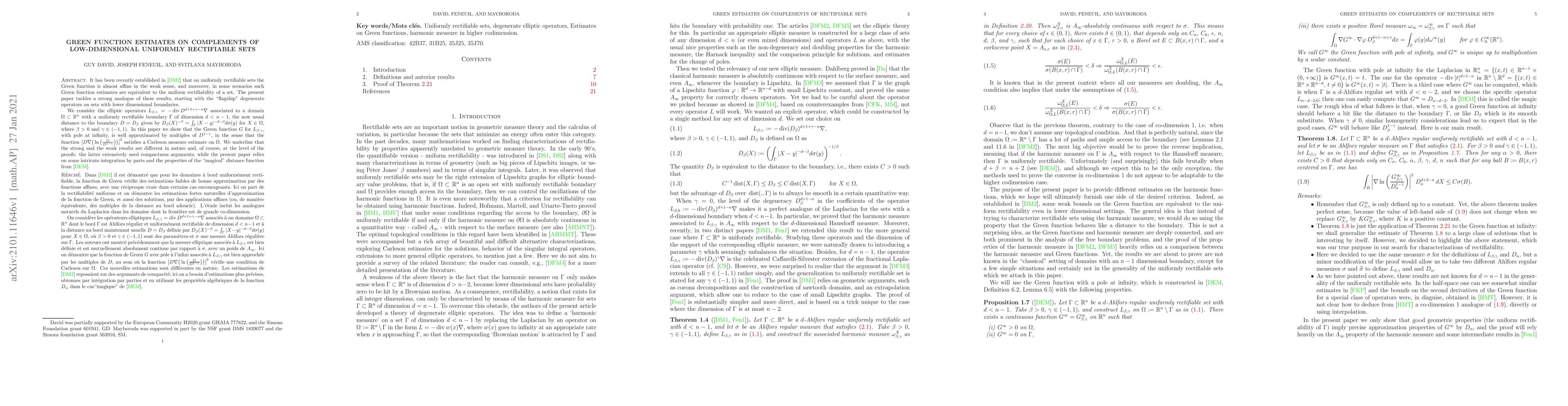 The paper employs advanced techniques from harmonic analysis, specifically focusing on Green functions and elliptic operators on sets with lower-dimensional boundaries. It builds on previous work by the authors and others, utilizing properties of uniformly rectifiable sets and distances to boundaries.
