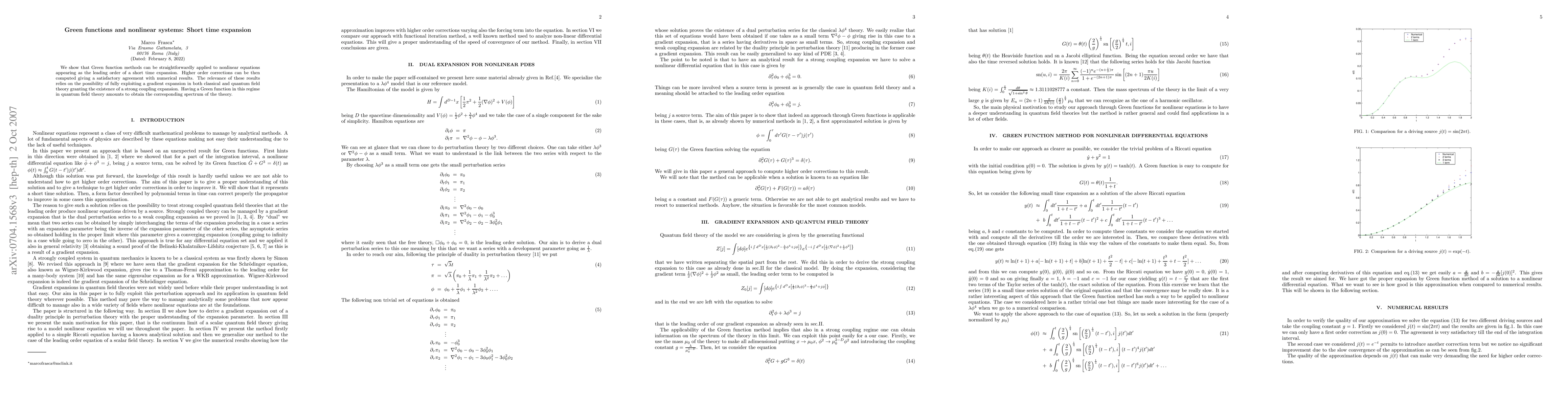 We show that Green function methods can be straightforwardly applied to nonlinear equations appearing as the leading order of a short time expansion. Higher order corrections can be then computed giving a satisfactory agreement with numerical results. The relevance of these results relies on the possibility of fully exploiting a gradient expansion in both classical and quantum field theory granting the existence of a strong coupling expansion. Having a Green function in this regime in quantum field theory amounts to obtain the corresponding spectrum of the theory.