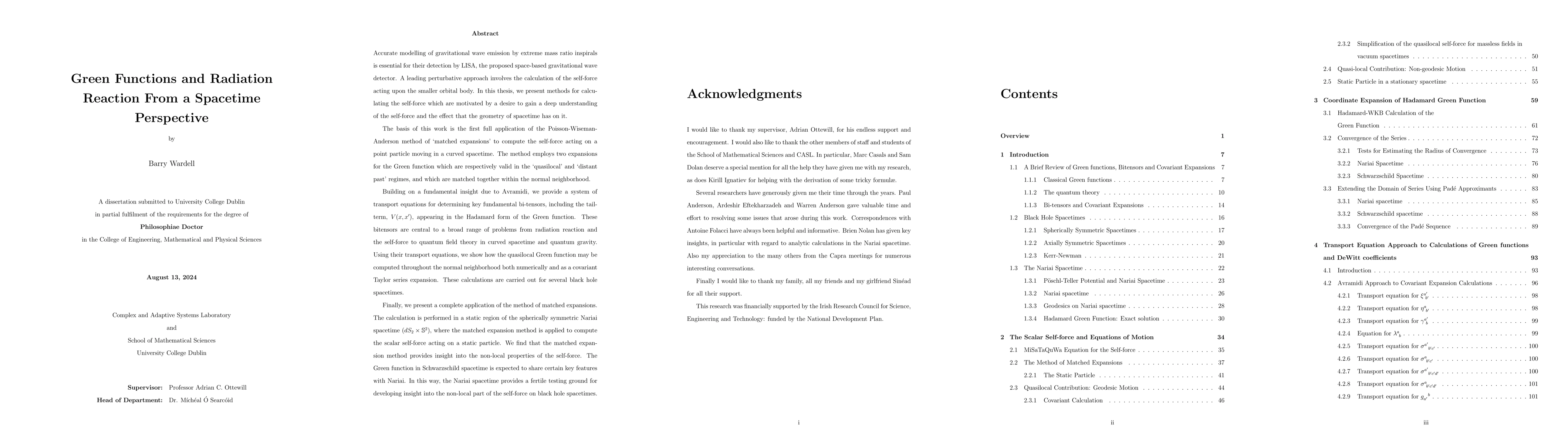 The basis of this work is the first full application of the Poisson-Wiseman-Anderson method of `matched expansions' to compute the self-force acting on a point particle moving in a curved spacetime. The method employs two expansions for the Green function which are respectively valid in the `quasilocal' and `distant past' regimes, and which are matched together within the normal neighborhood. Building on a fundamental insight due to Avramidi, we provide a system of transport equations for determining key fundamental bi-tensors, including the tail-term, V(x,x'), appearing in the Hadamard form of the Green function. These bitensors are central to a broad range of problems from radiation reaction and the self-force to quantum field theory in curved spacetime and quantum gravity. Using their transport equations, we show how the quasilocal Green function may be computed throughout the normal neighborhood both numerically and as a covariant Taylor series expansion. These calculations are carried out for several black hole spacetimes. Finally, we present a complete application of the method of matched expansions. The calculation is performed in a static region of the spherically symmetric Nariai spacetime (dS_2 X S^2), where the matched expansion method is applied to compute the scalar self-force acting on a static particle. We find that the matched expansion method provides insight into the non-local properties of the self-force. The Green function in Schwarzschild spacetime is expected to share certain key features with Nariai. In this way, the Nariai spacetime provides a fertile testing ground for developing insight into the non-local part of the self-force on black hole spacetimes.