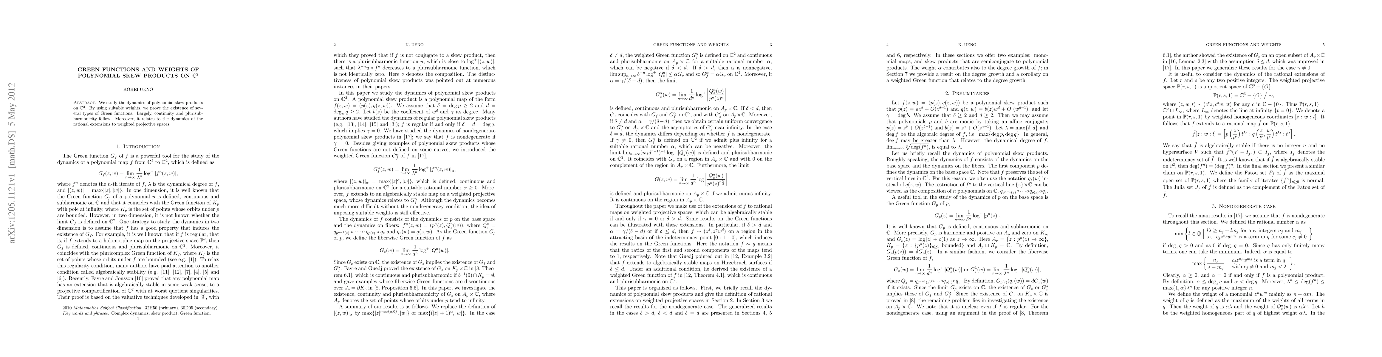 This research demonstrates the existence of various Green functions for polynomial skew products on C^2, proving their continuity and plurisubharmonicity. It also connects these findings to the dynamics of rational extensions in weighted projective spaces.